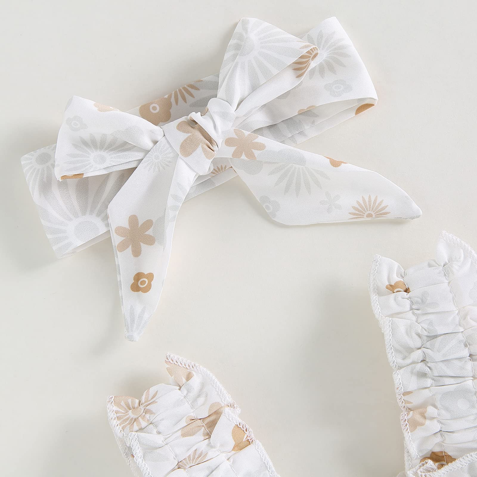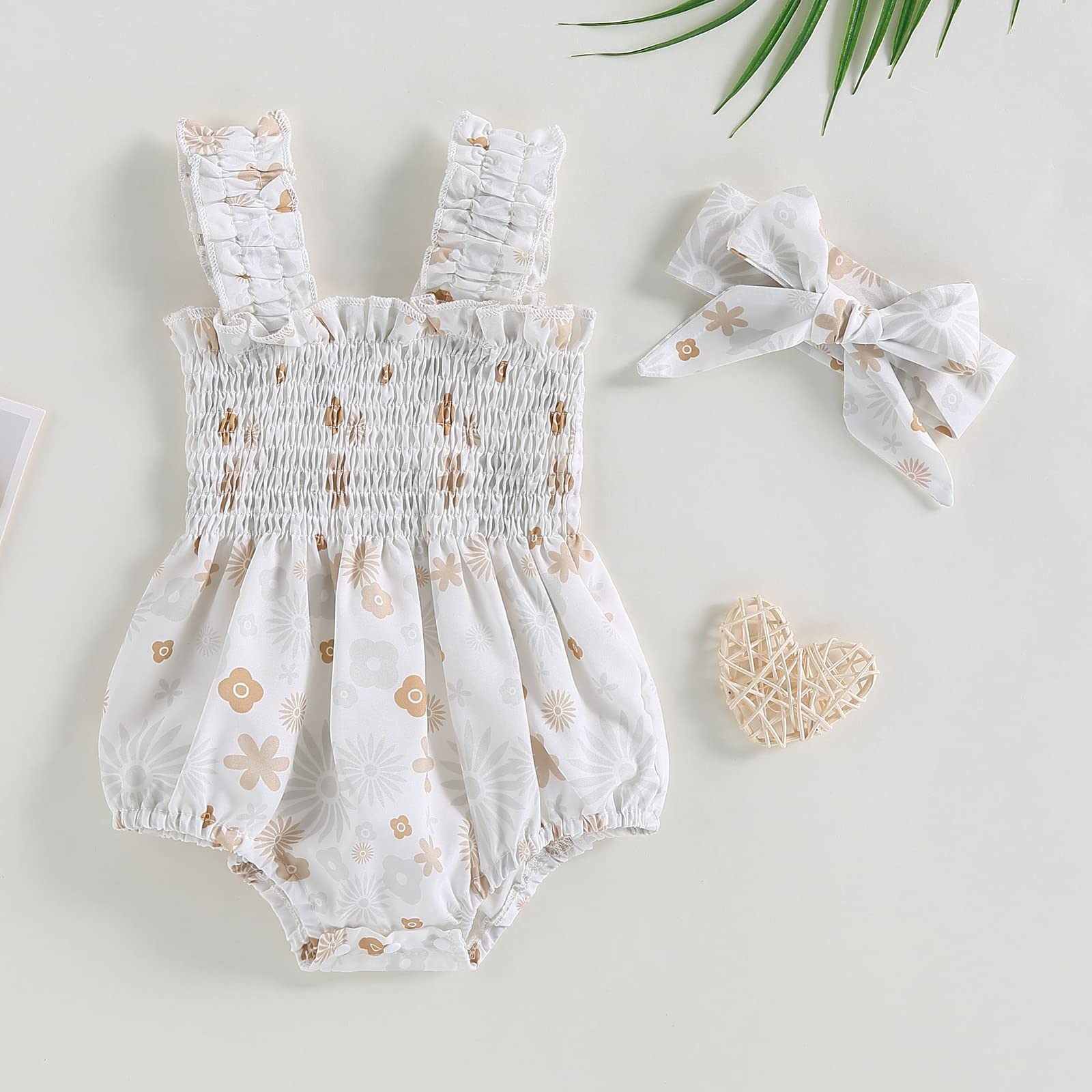 Newborn Baby Girl Bodysuit Sleeveless Halter Frill Romper One-piece Jumpsuit with Headband Summer Clothes Set