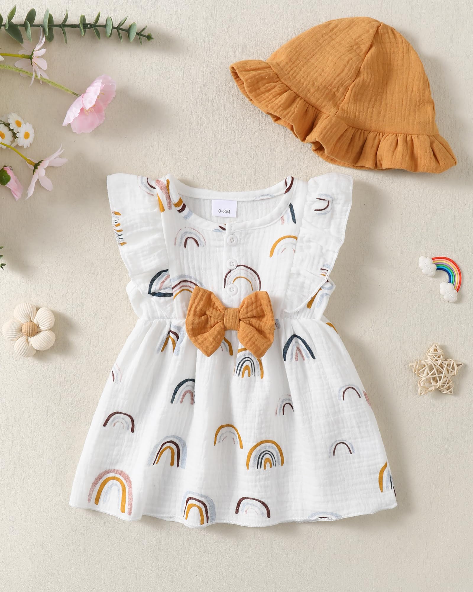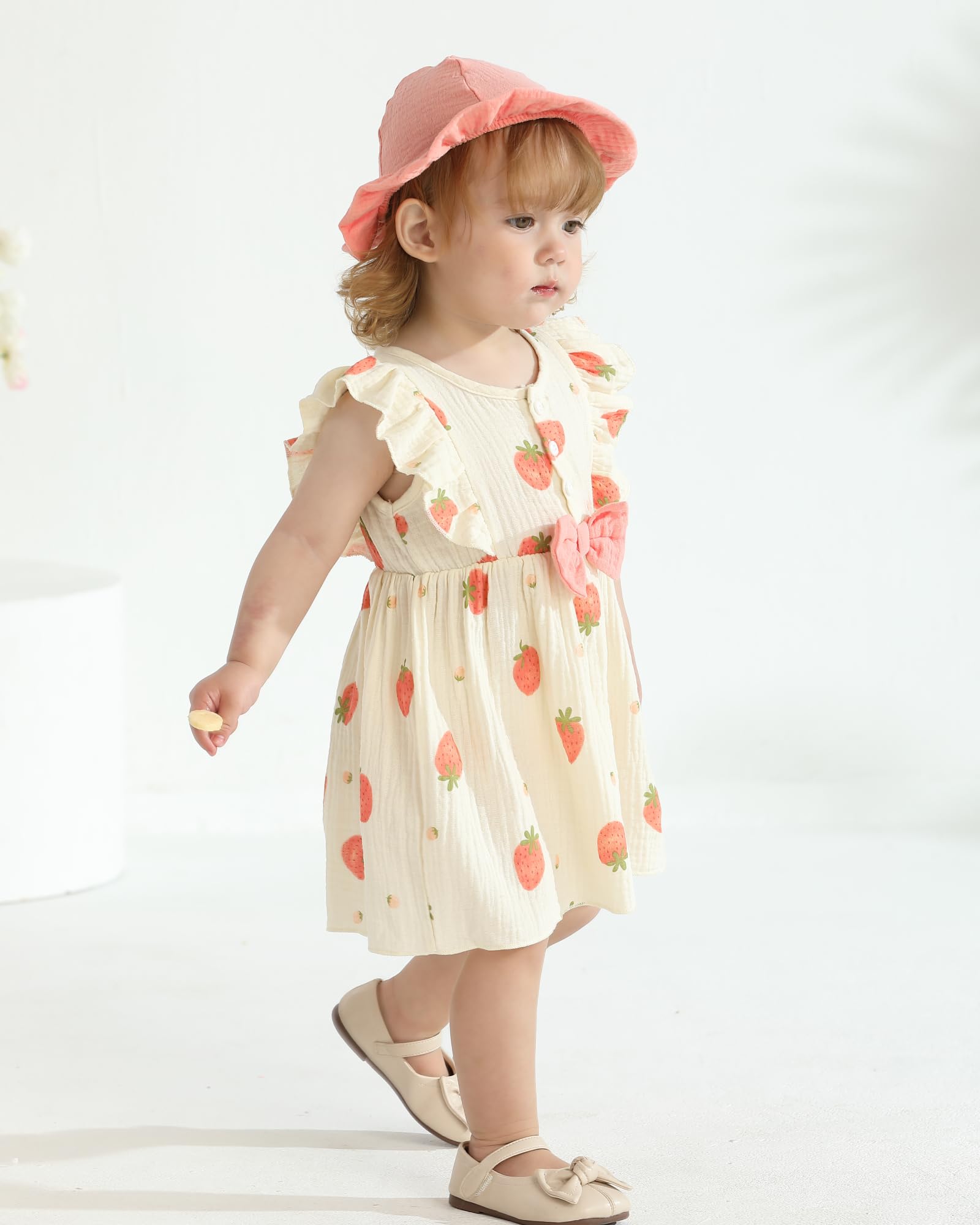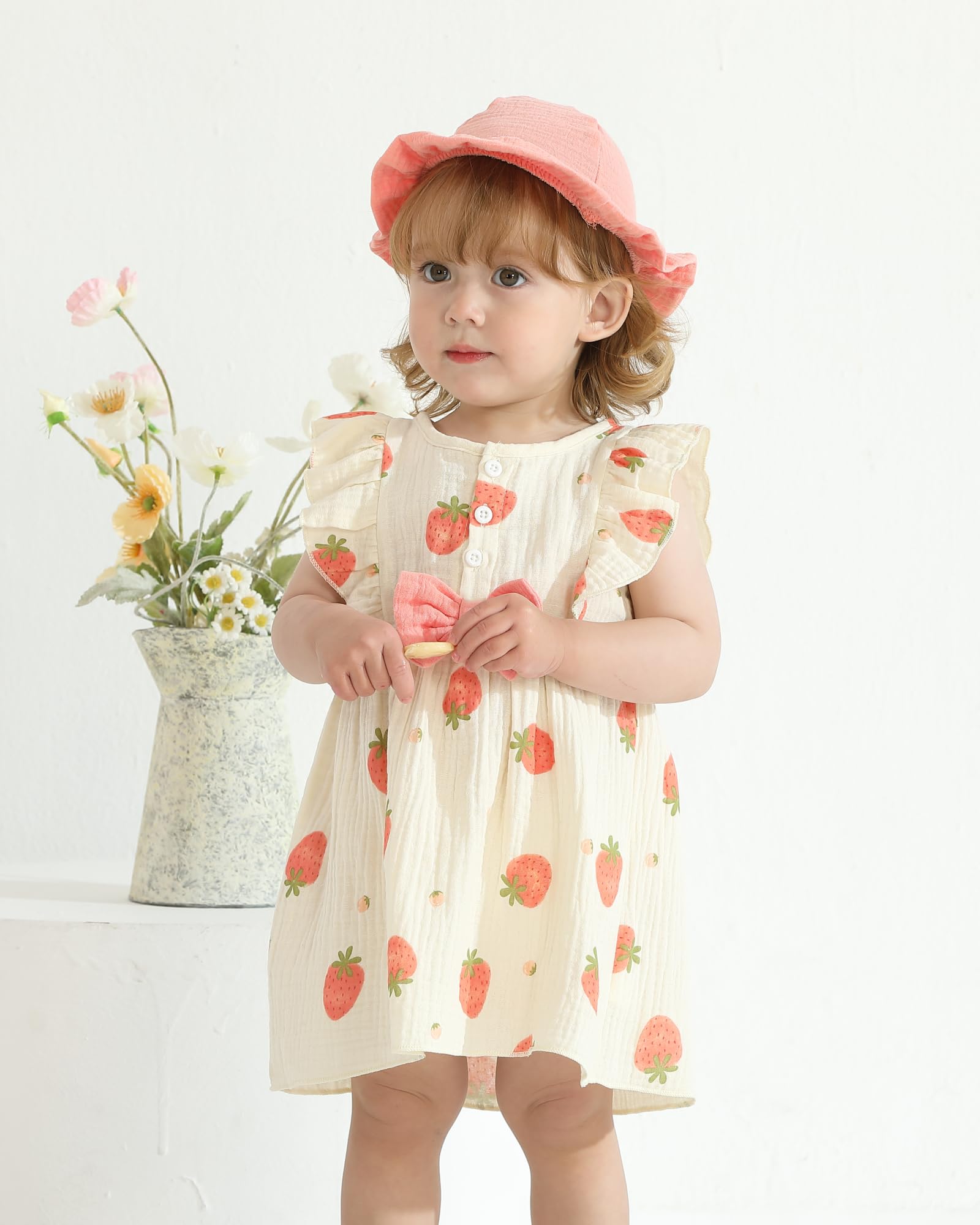 - Cute Summer Toddler Dresses Features: Cute white beige toddler girl dresses, featuring ruffle flutter sleeves, charming bowknot , button up neckline, and a matching sun hat for a complete summer toddler outfit. The fashionable casual little girl dress, princess beach sundress, is a must have summer girl dressy for toddler.