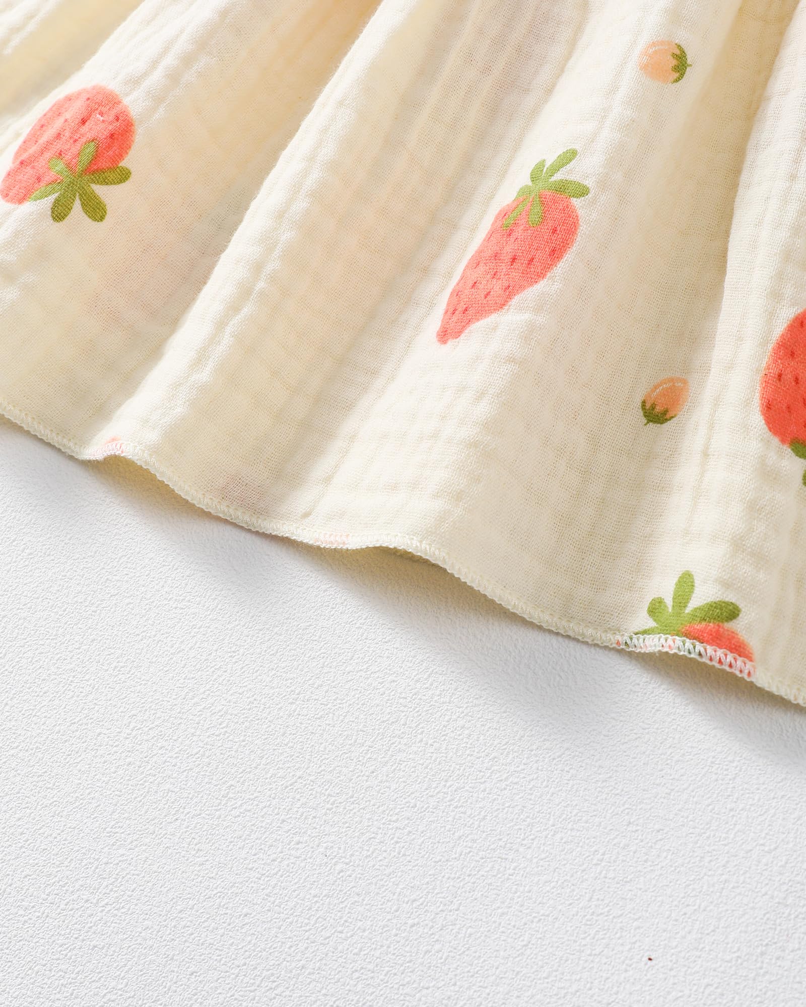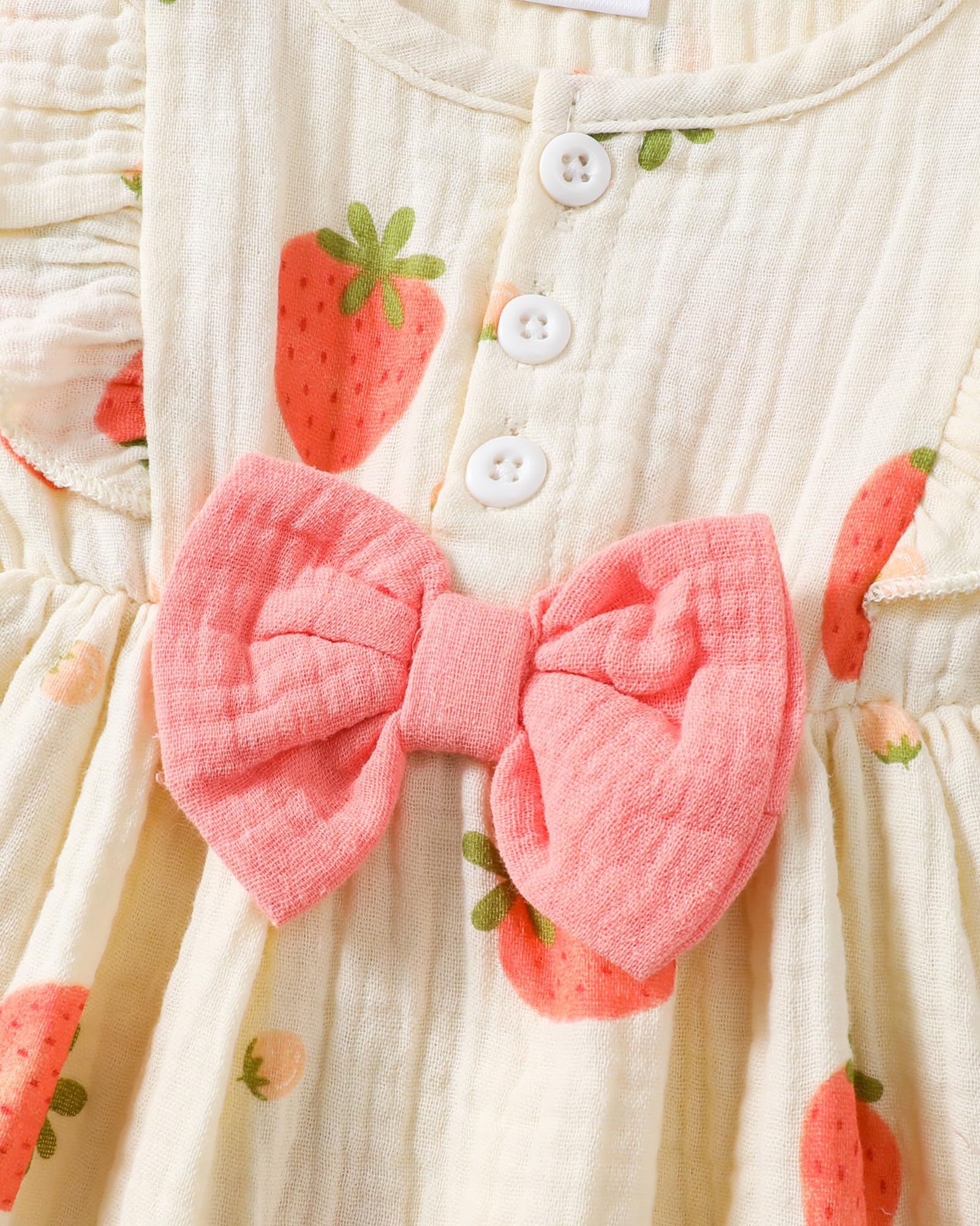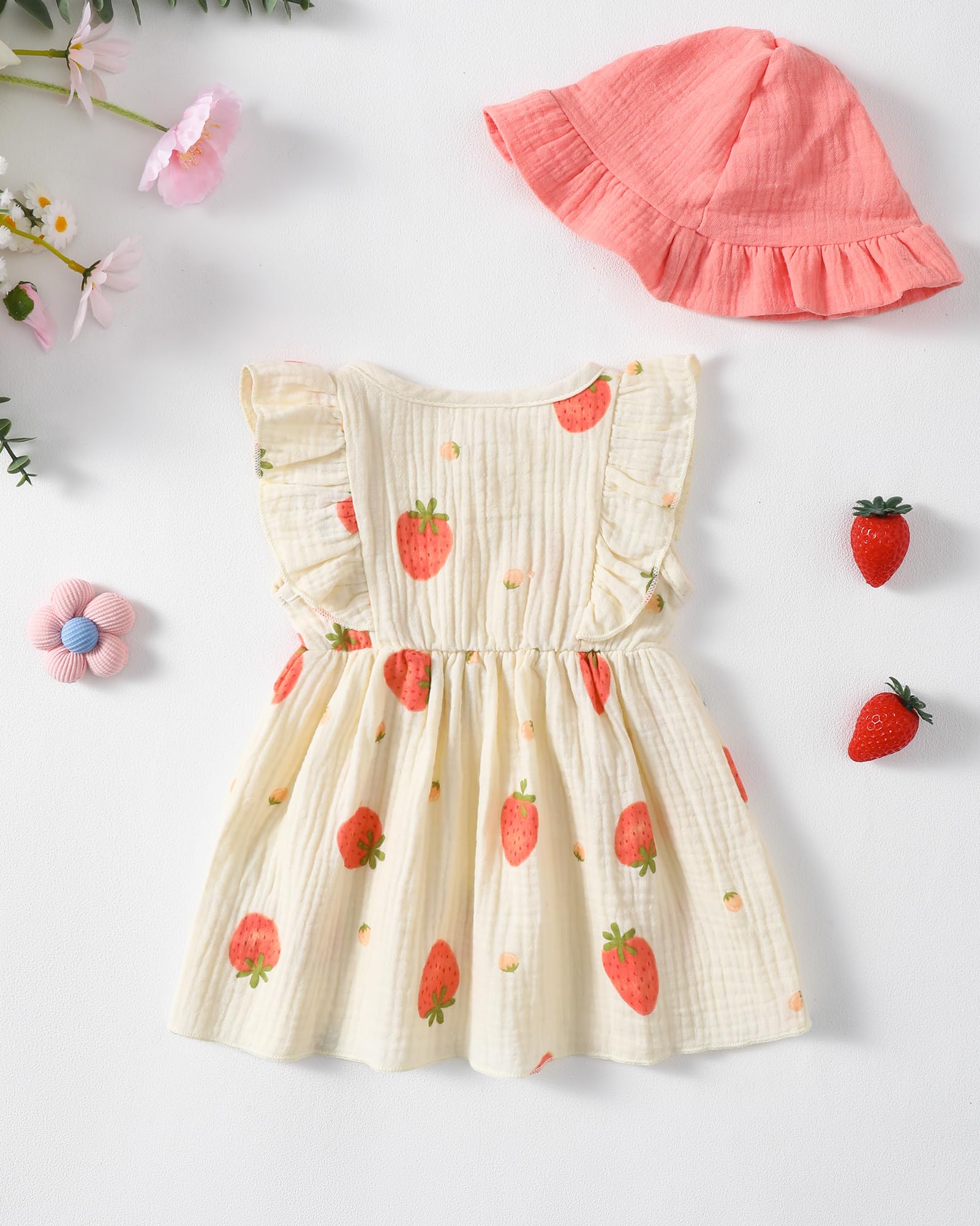 - Materials: Cotton linen baby girl dresses, adorable cream-colored infant dress with delicate strawberry/grape/polka dot/love heart/rainbow/floral/print pattern design, lightweight, comfortable and breathable. Cute baby summer dresses for girls.