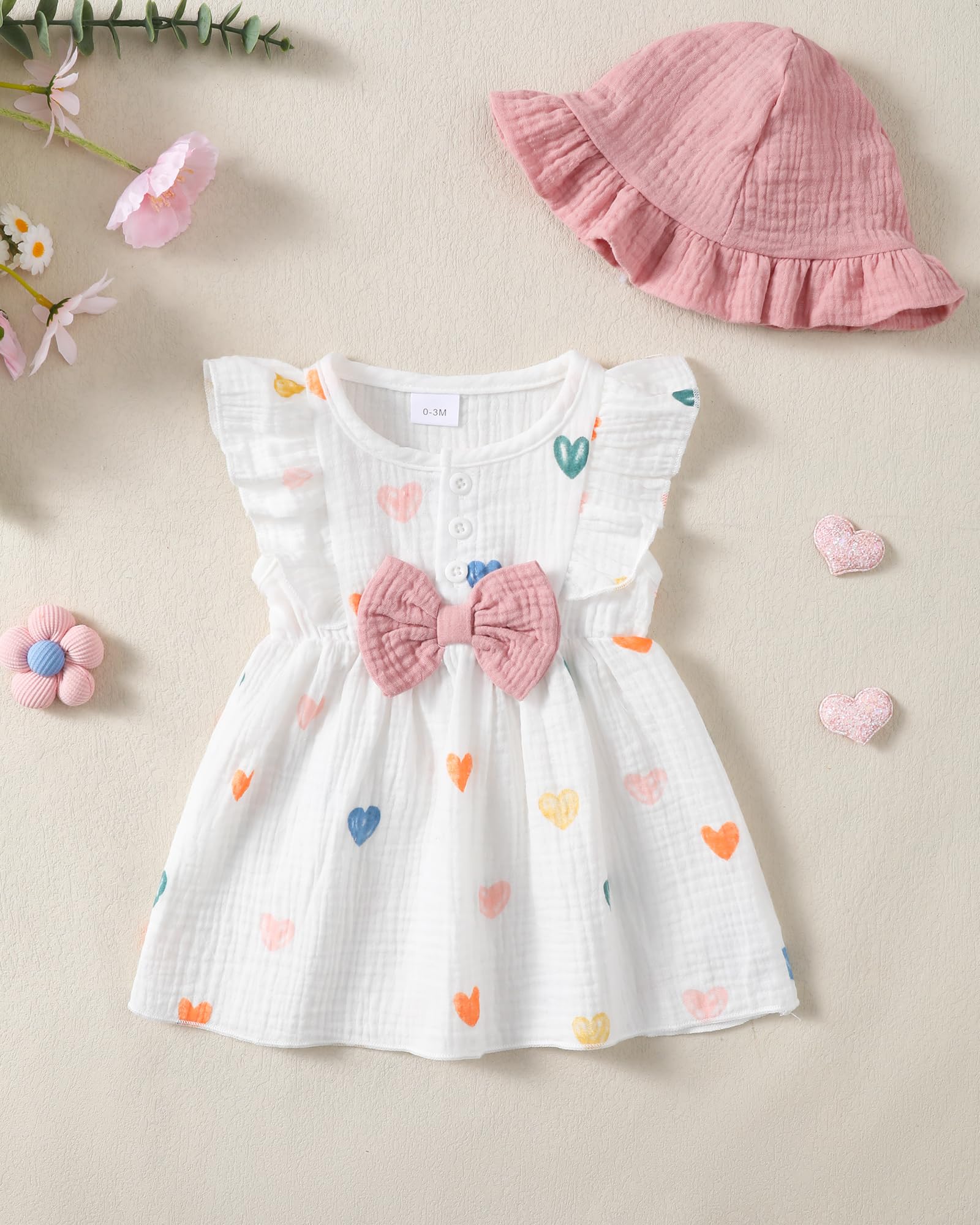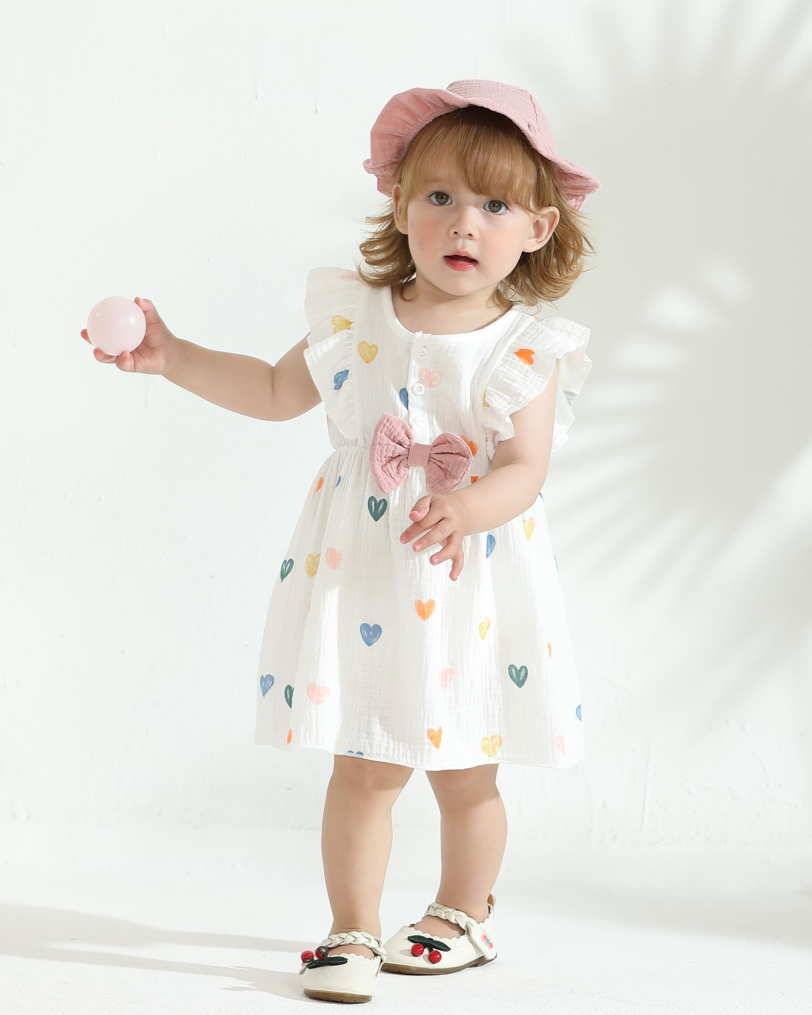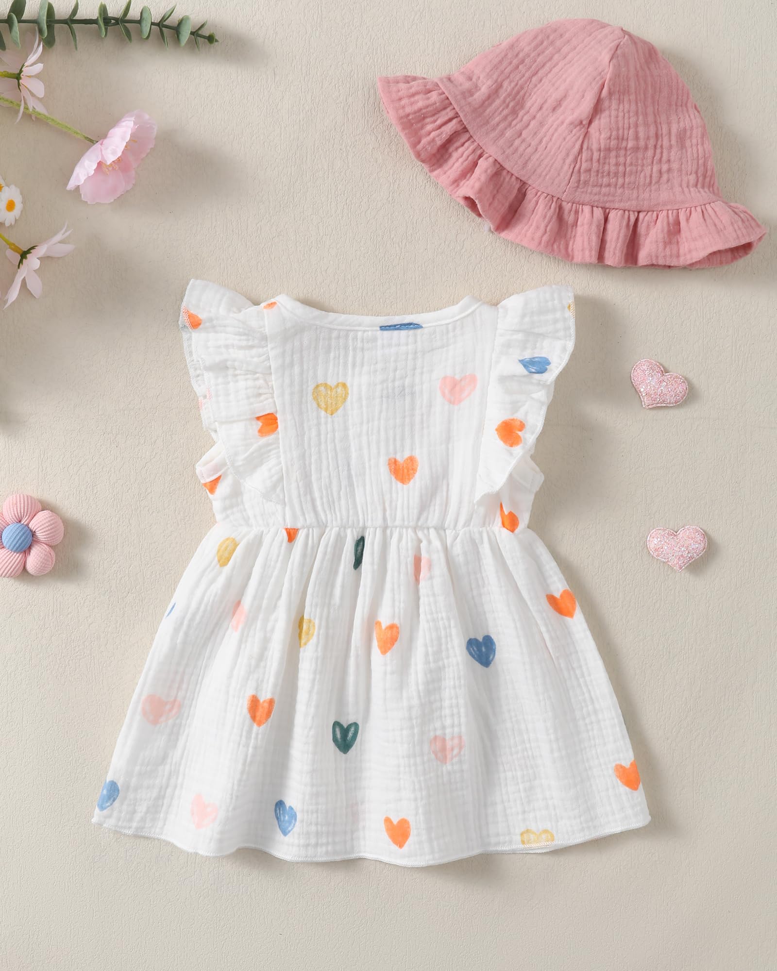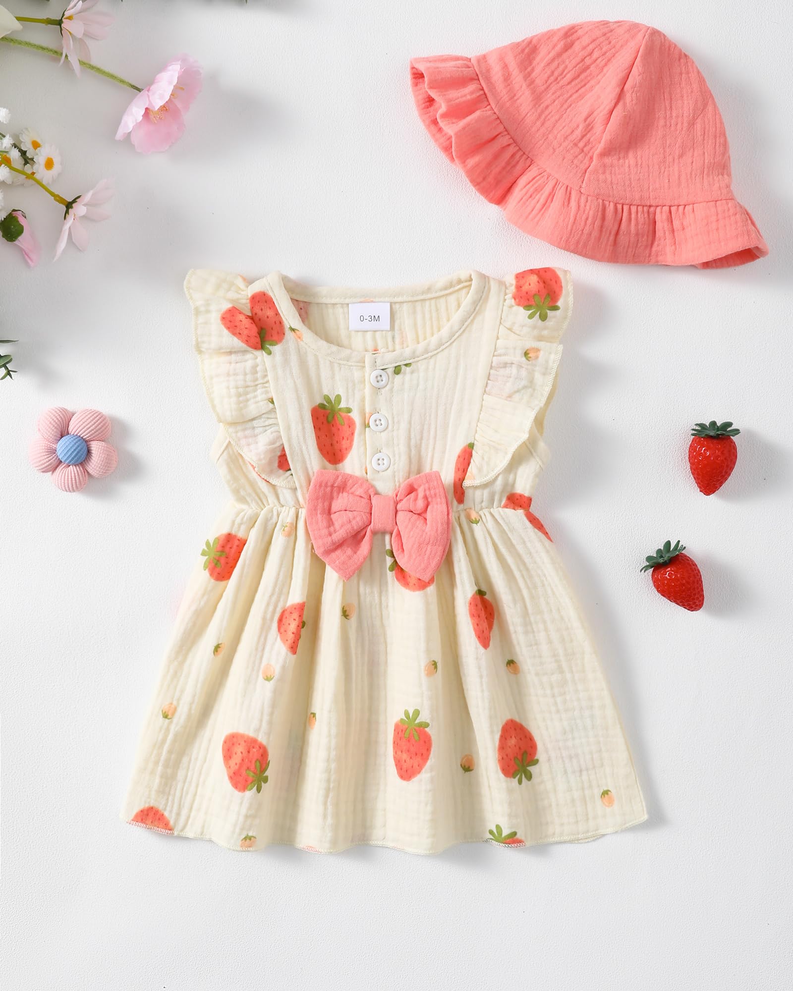 - Materials: Cotton linen baby girl dresses, adorable cream-colored infant dress with delicate strawberry/grape/polka dot/love heart/rainbow/floral/print pattern design, lightweight, comfortable and breathable. Cute baby summer dresses for girls.