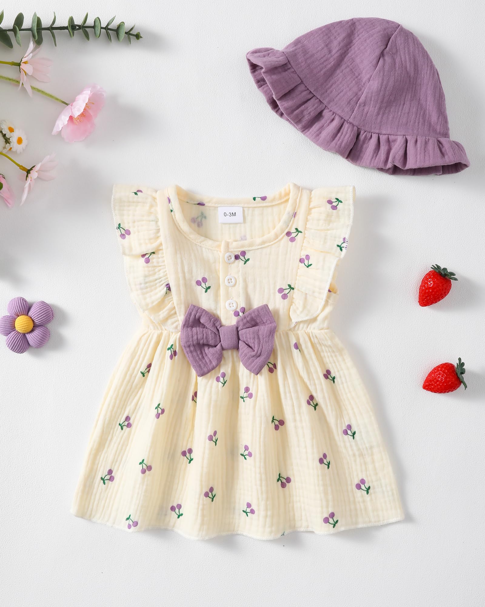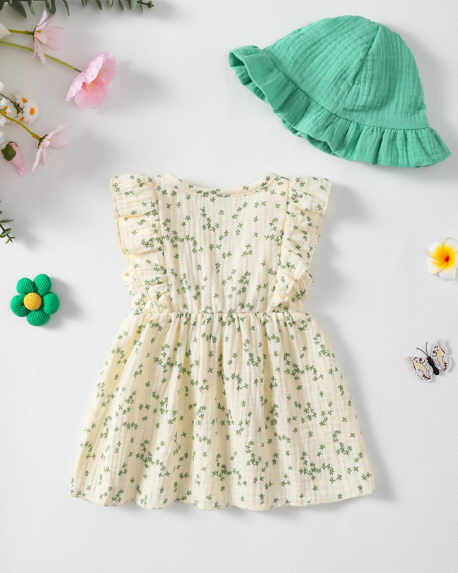 - Baby Girl Dress Package: One pieces toddler baby girl playwear dresses+1 hat for complete sun protection , machine wash with care