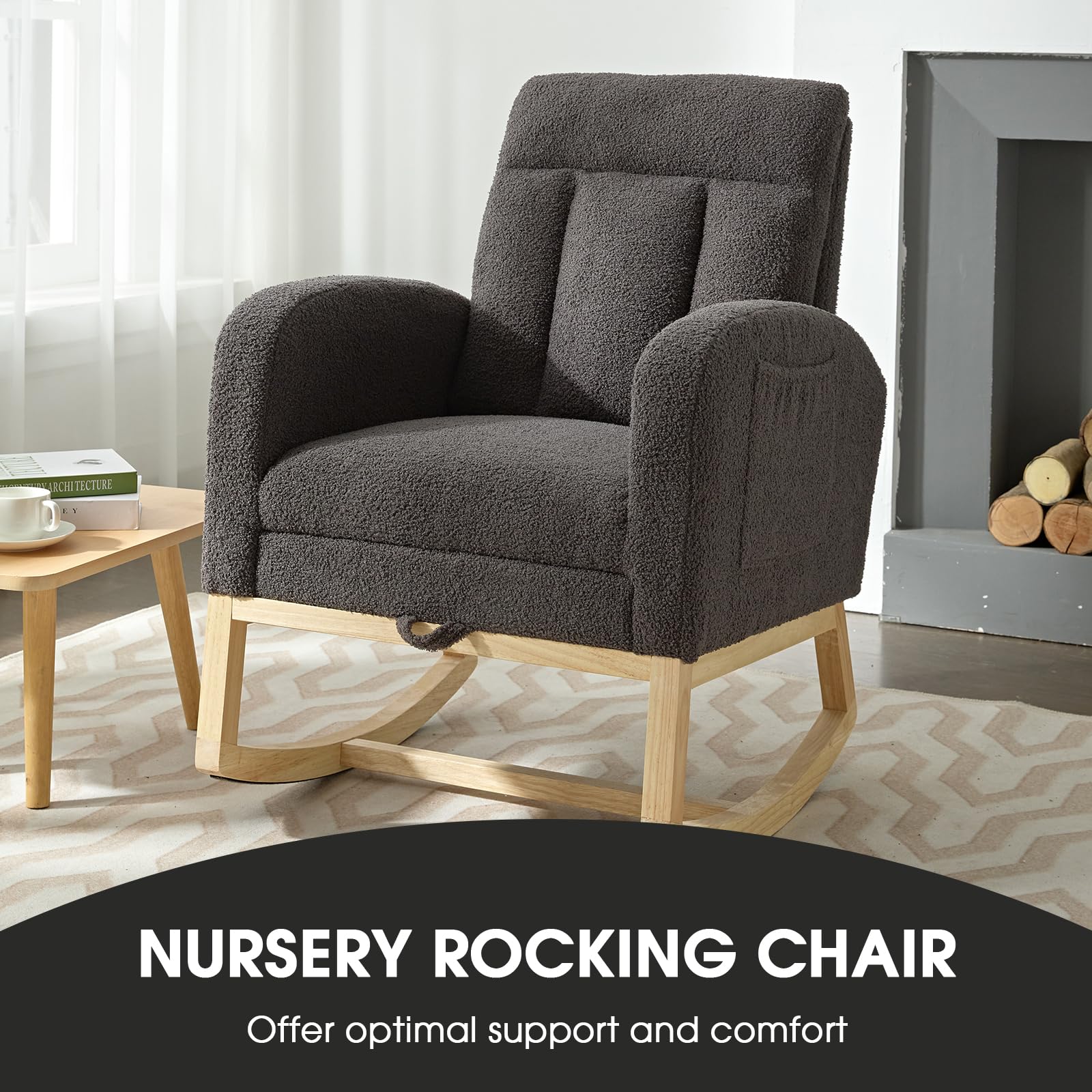 - Better Comfort - Both the backrest and seat cushion of our glider rocker rocking are filled with high-density sponge, which is more resilient and will not deform easily. Covered with superior teddy fabric, the surface is very cosy and easy to maintain. The simple color and smooth lines make this kids rocking chair very stylish and chic. Let you have a better break.