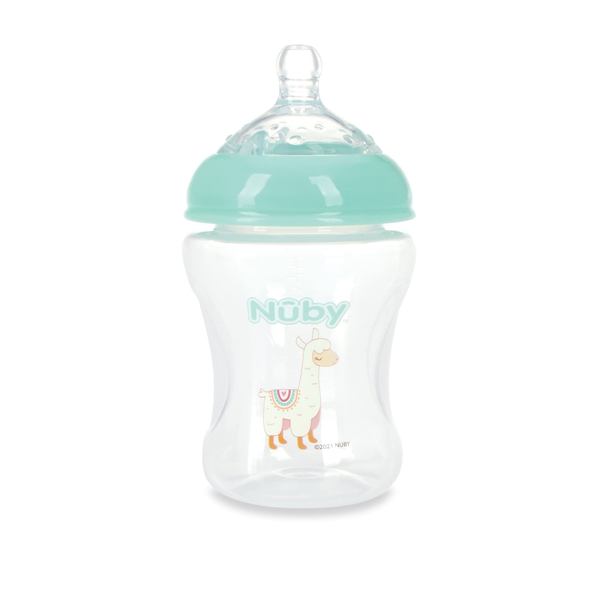 Nuby's Printed Infant Bottles have a slow flow silicone nipple that will allow your baby to drink at their own pace. The finger grips provide sability for your little while they drink.