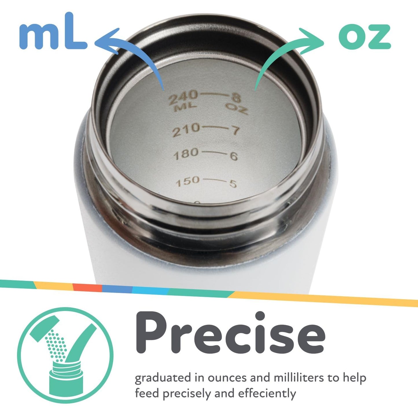 - DESIGNED FOR PRECISION AND CONVENIENCE: Formula dispenser included for precise measurement; Ounce and milliliter markers to ensure accurate amount of liquid is added; Digital lid changes color when bottle milk temperature is just right