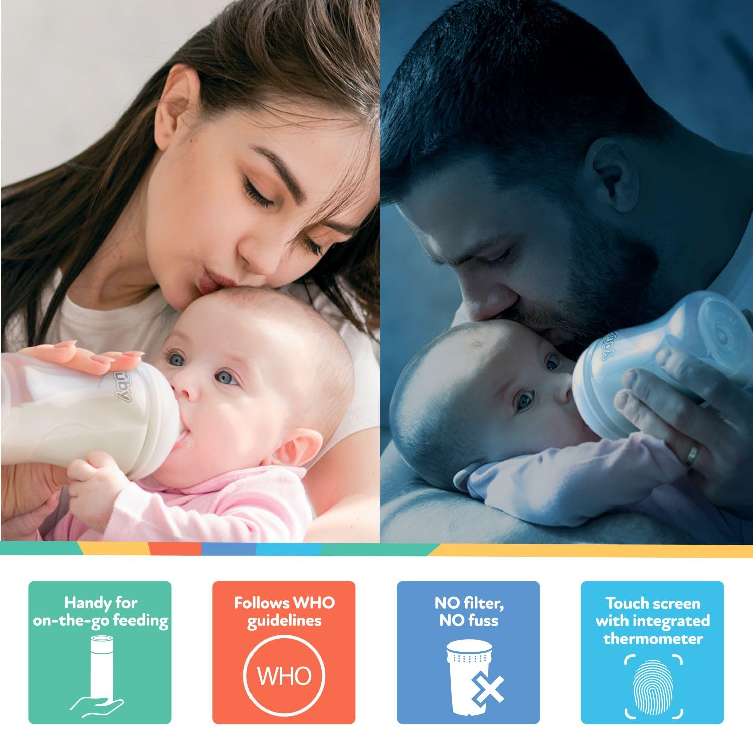 - EASY TO USE: No complex setup up required; Baby bottle maker is easy to clean and does not require expensive replacement filters; Portable for preparing baby bottles anytime, anywhere