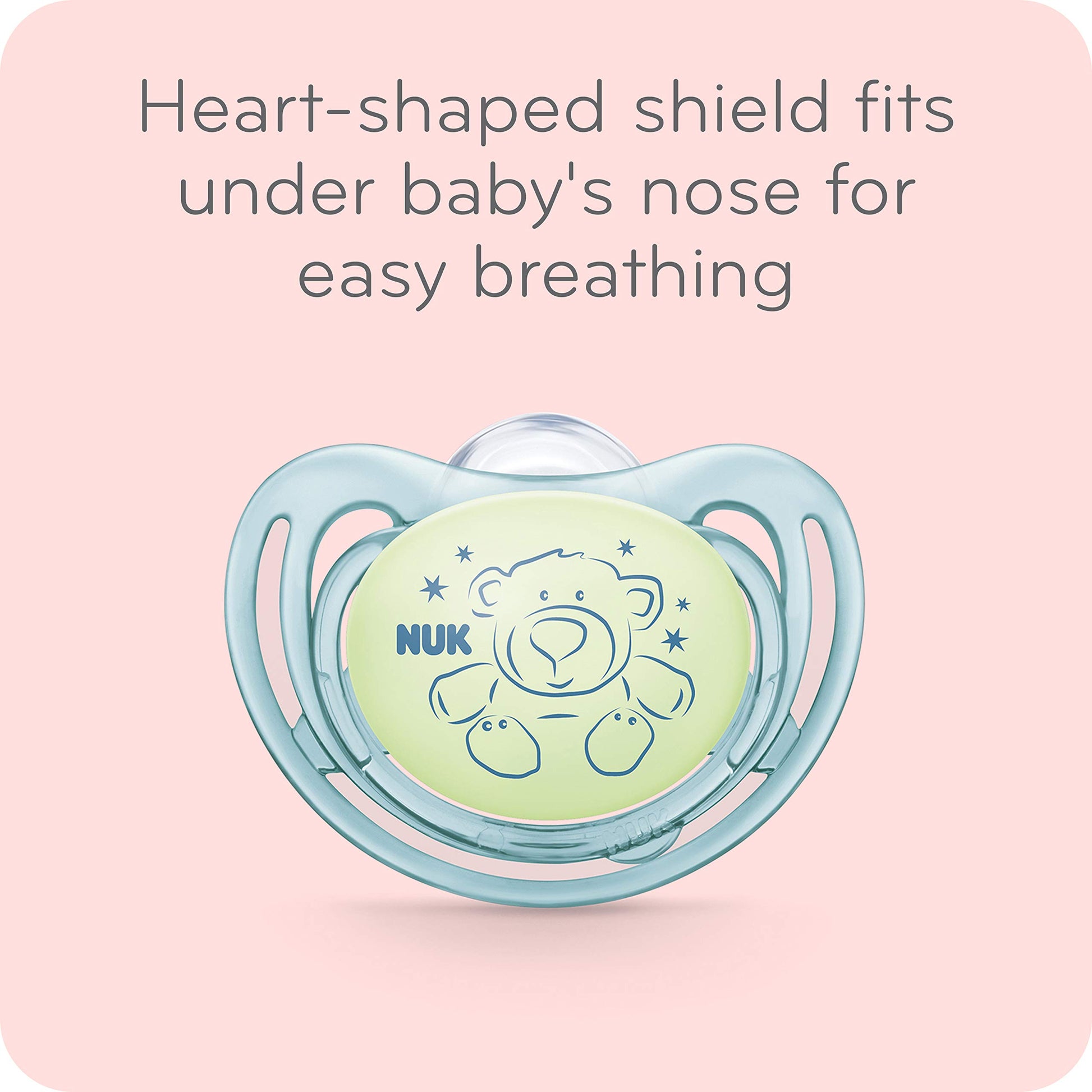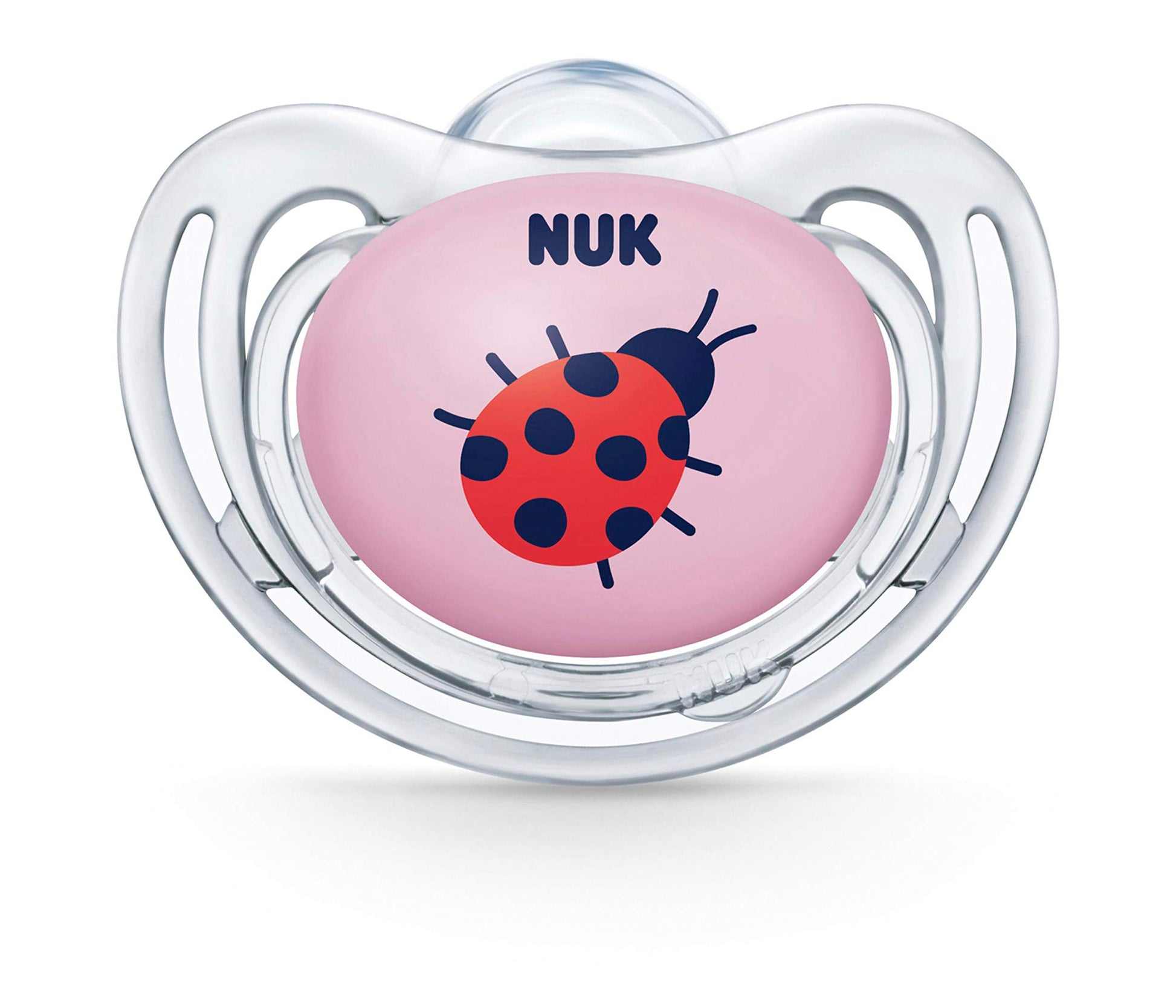 - BPA-free; silicone nipples; top-rack dishwasher safe; easily clean pacifiers in microwave with new NUK reusable storage case