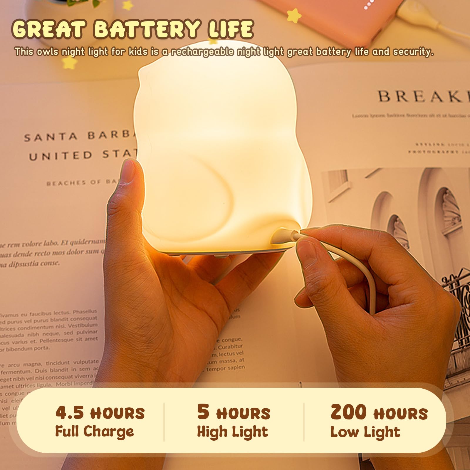 - Friendly Bedside Light: Bunny Night Lights are all Squishy and Soft and Made of Food Grade Silicone. So you don't Have to Worry about Your Toddler Who Might Decide to Lick it on a Whim. The Nursery Night Light Uses Anti-Blue Led Lights that won't Flicker and Hurt Children's Eyes, And The Warm Light can Help Your Child Overcome the Darkness. Perfect for Nursery School and New Moms for their Childrens.