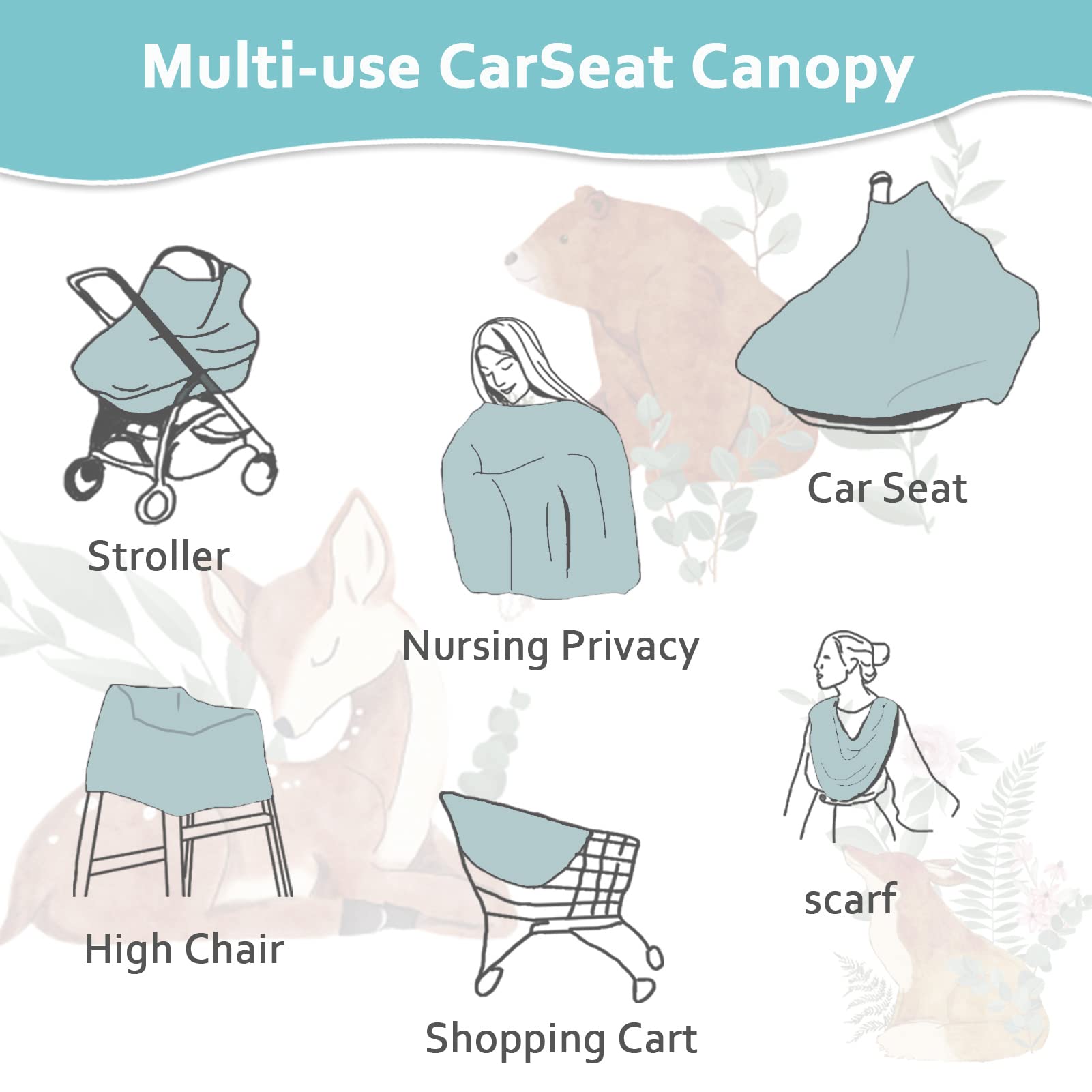 - MULTIPURPOSE USE:The Baby Car Seat Cover can also be used as a car seat canopy, high chair and shopping cart cover, scarf, blanket, changing mat, and much more