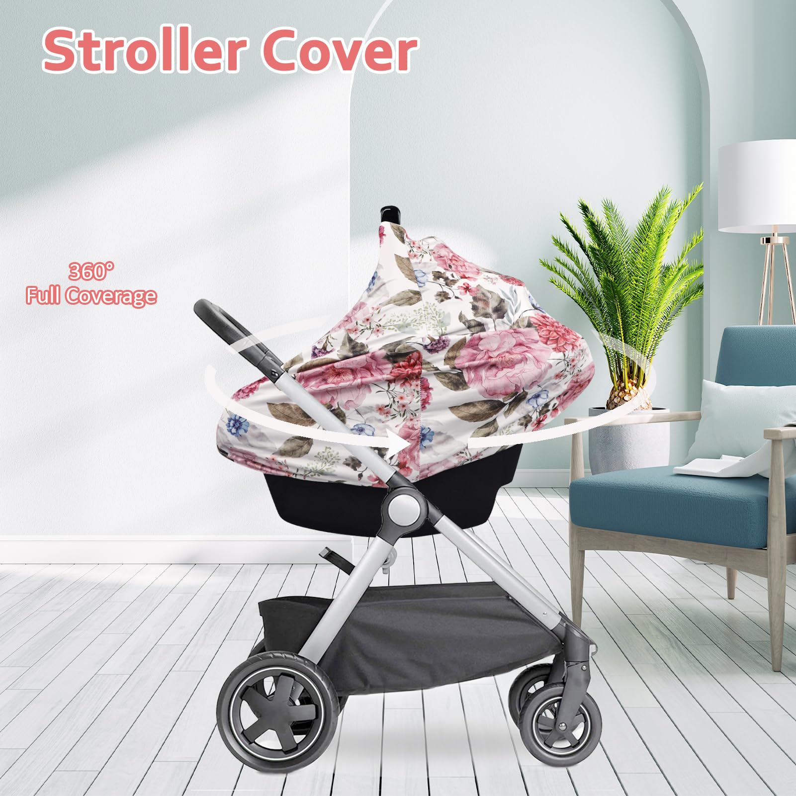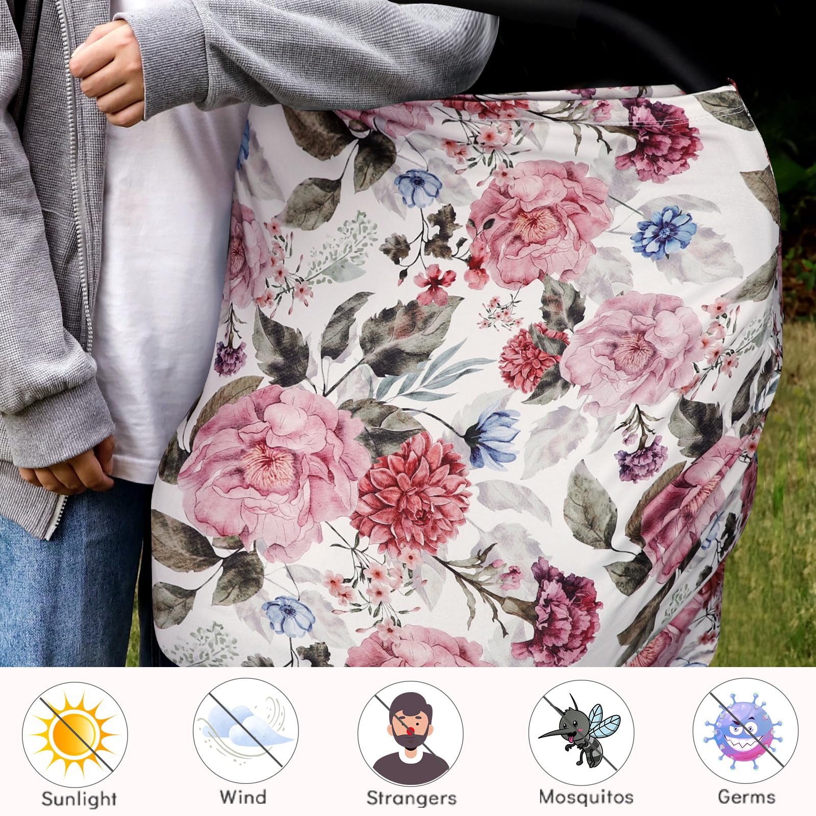 Nursing Cover Breastfeeding, Multi-use Baby CarSeat Cover Girls, Infant Stroller Car Seat Cover, Stretchy Carseat Canopy, Soft Breathable, Peony