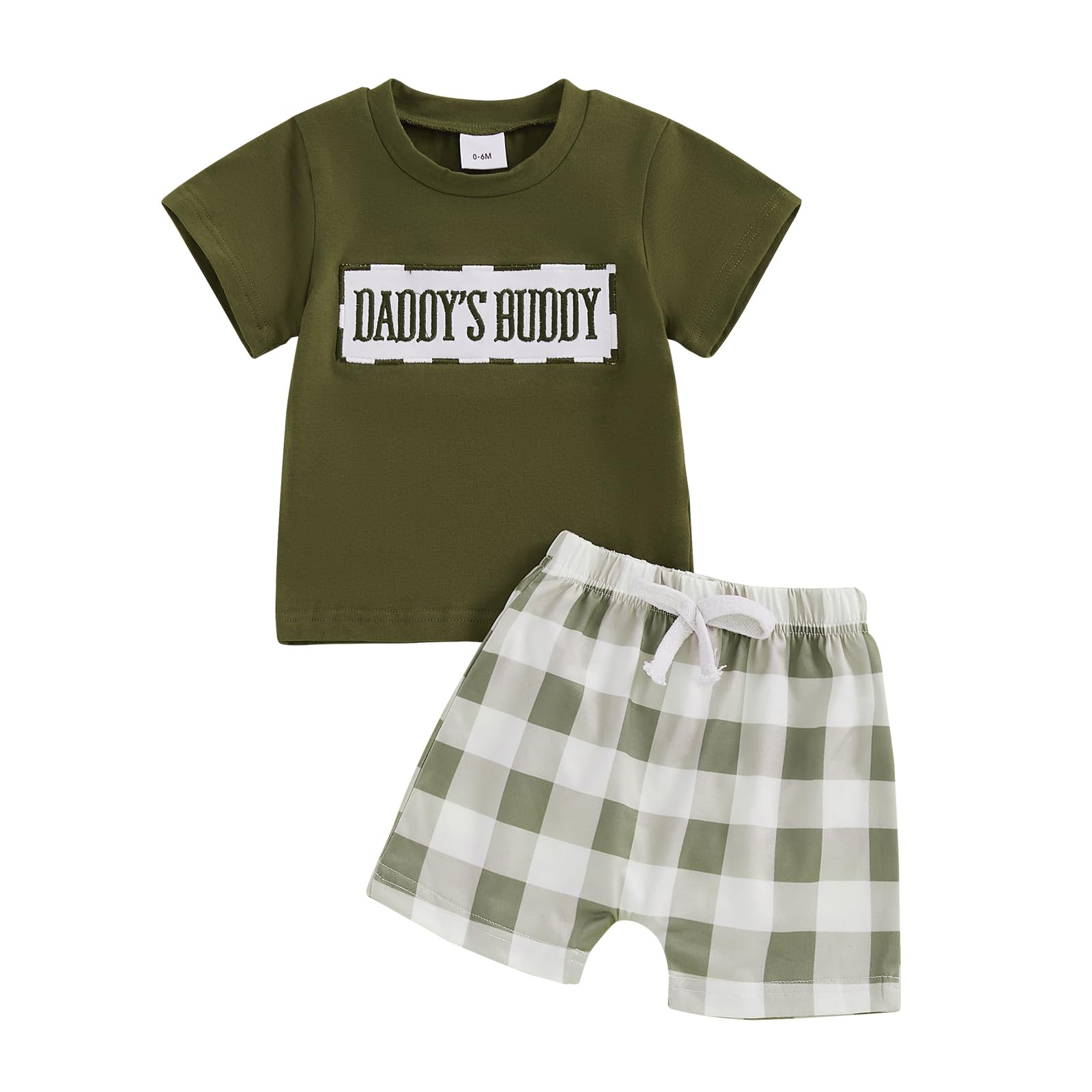 • FEATURE: Daddys boy baby clothes, baby boy shorts set, short sleeve and crewneck pullover top, embroidery letter '' MAMAS BOY''''DADDYS BUDDY'' Tshirt, matching with plaid shorts, elastic waist, classic style, very cute and cool, your little one will receive many compliments wearing them