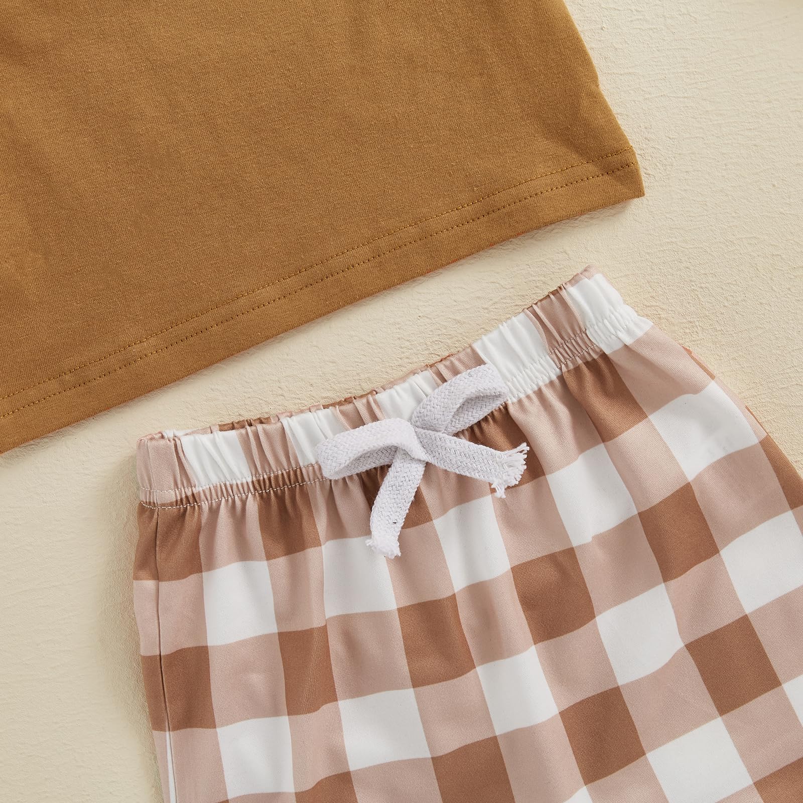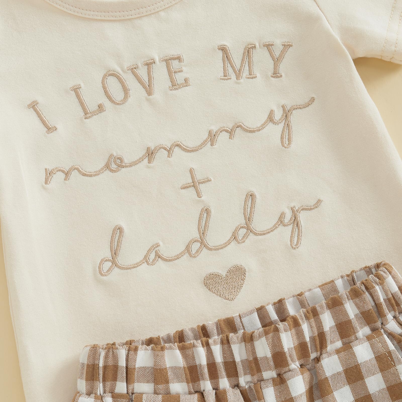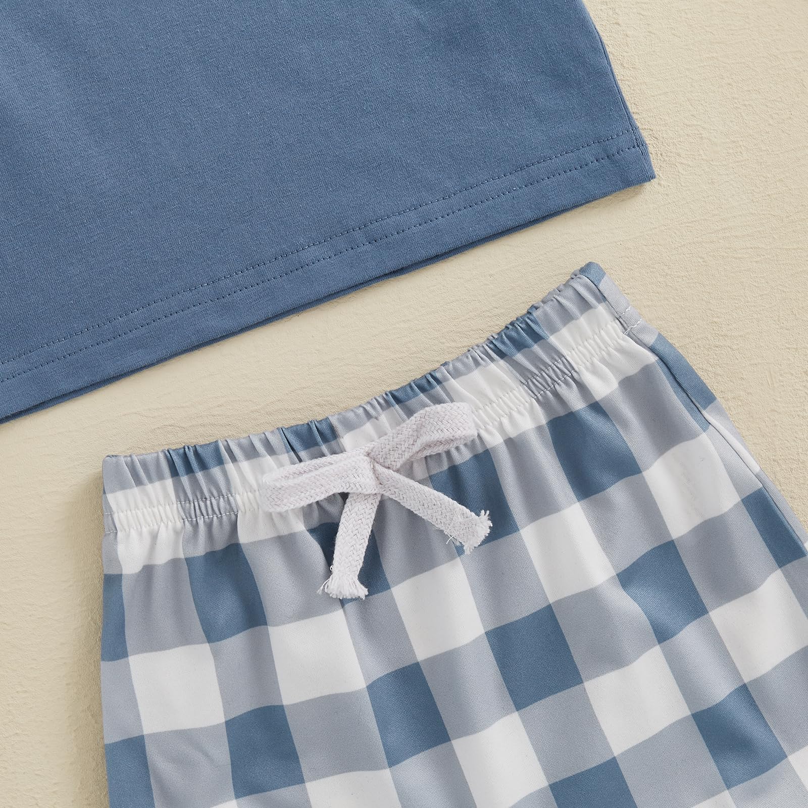 NZNDSHD Baby Boy Summer Clothes Daddys/Mamas Boy Matching Outfit Short Sleeve Embroidery T-shirt Plaid Toddler Shorts Set