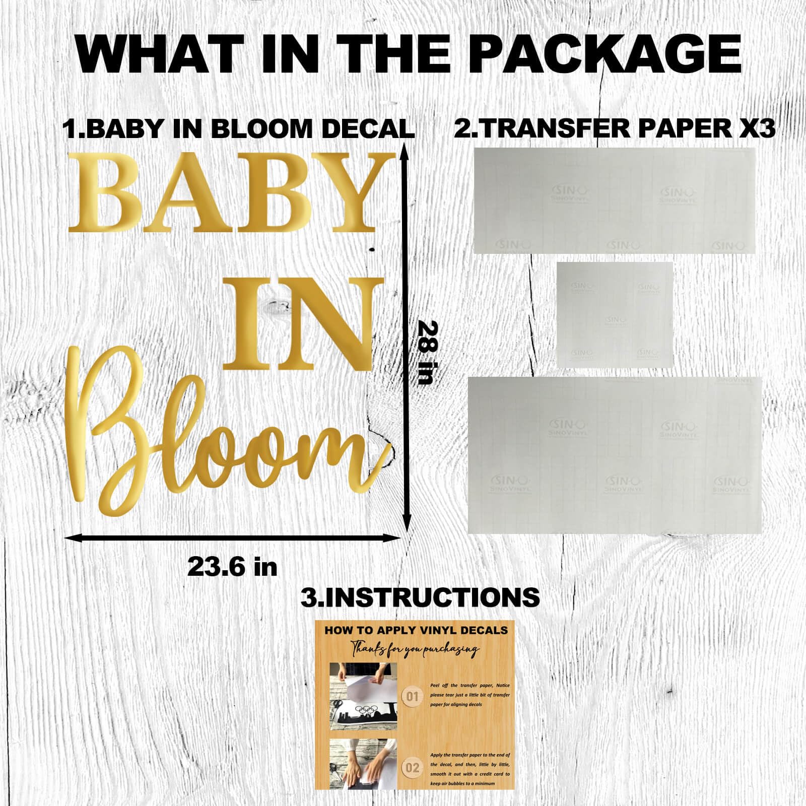 Oh Baby Decal Sign for Backdrop Gold Large Baby in Bloom Baby Shower Decorations Neutral Gender Reveal Decor with Transfer Paper