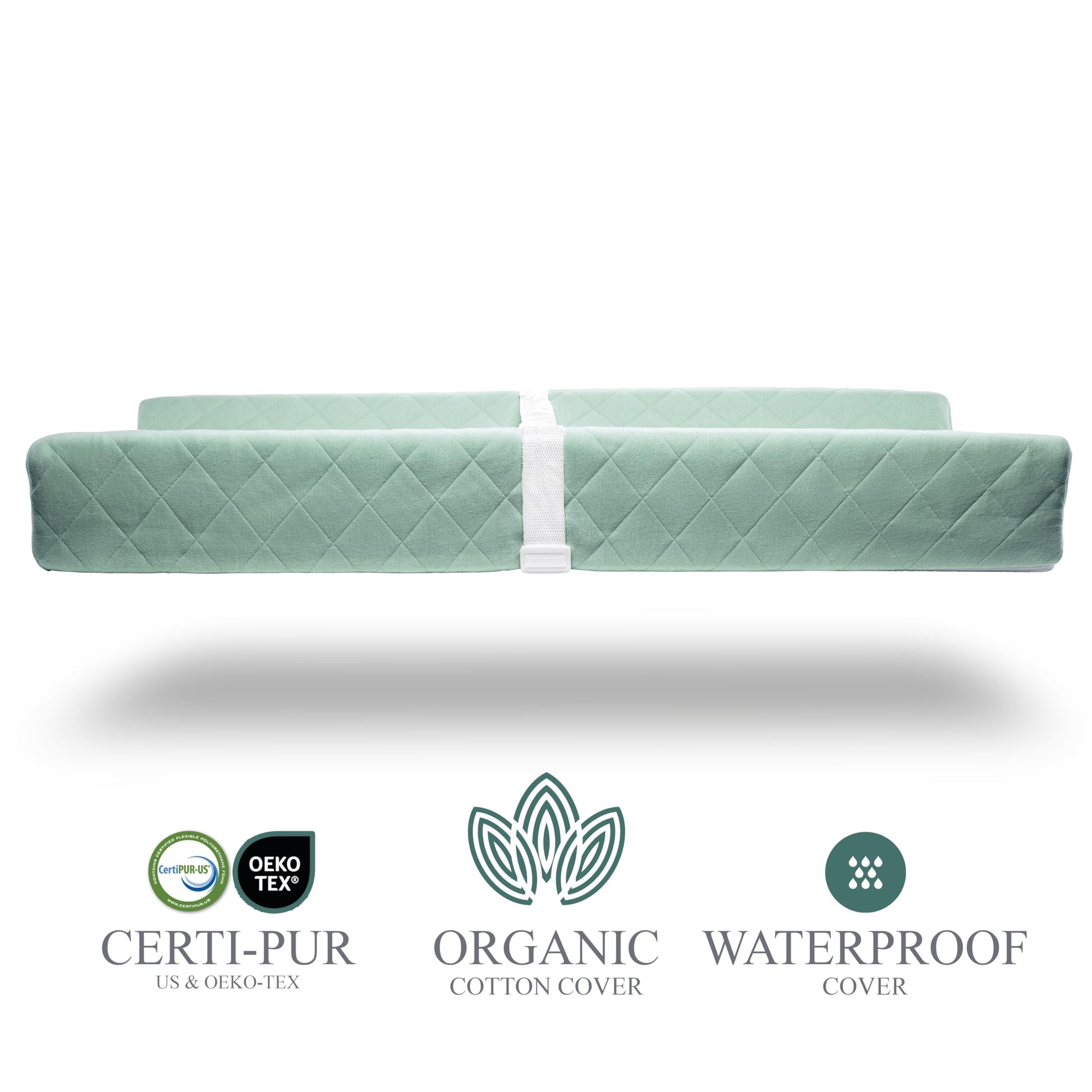 - WATERPROOF MATTRESS STAYS CLEAN & DRY | No Need for Bed Sheets or Disposable Liners! Our Changing Pad’s Thick, Cozy Mattress Cradles Your Little Angel in its Warm Embrace with Contoured Walls, Easy-to-Clean Moisture-Resistant Exterior & CertiPUR-US Certified Cushion Foam Interior | Mattress Arrives Vacuum Sealed & Expands to Full Size in 24-48 Hours