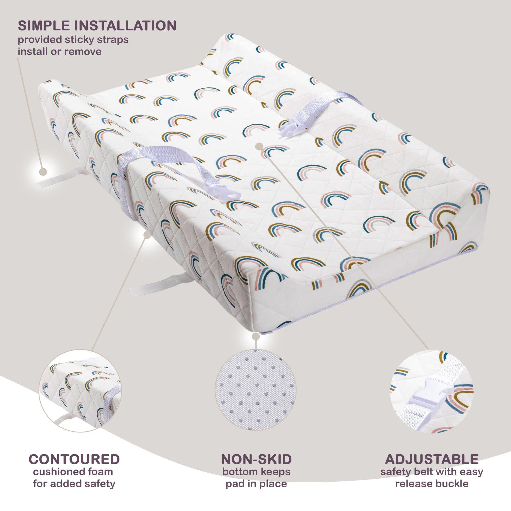 - ADJUSTABLE BELT & OTHER SAFETY FEATURES | Never Worry About Your Baby Squirming Around or Rolling Off the Table! Fasten the Built-In Safety Strap with Easy-Release Buckle Across Newborn’s Tummy to Keep Them Safe & Snug During Changing | Advanced Non-Skid Design Also Keeps the Bottom of the Pad Securely Gripped to Surface to Prevent Sliding
