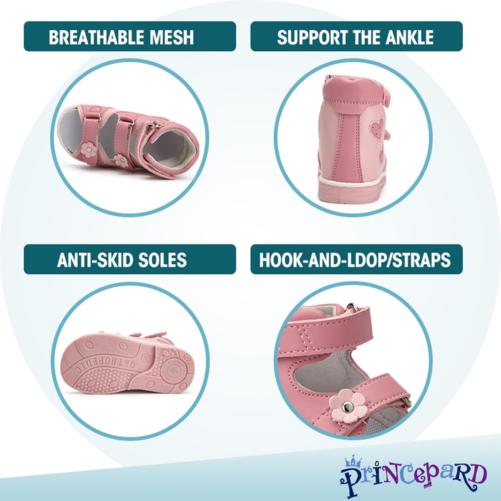 Orthopedic Sandals for girls with Hollowed Out Heart Pattern,High-top AFO Shoes with Arch and Ankle Support