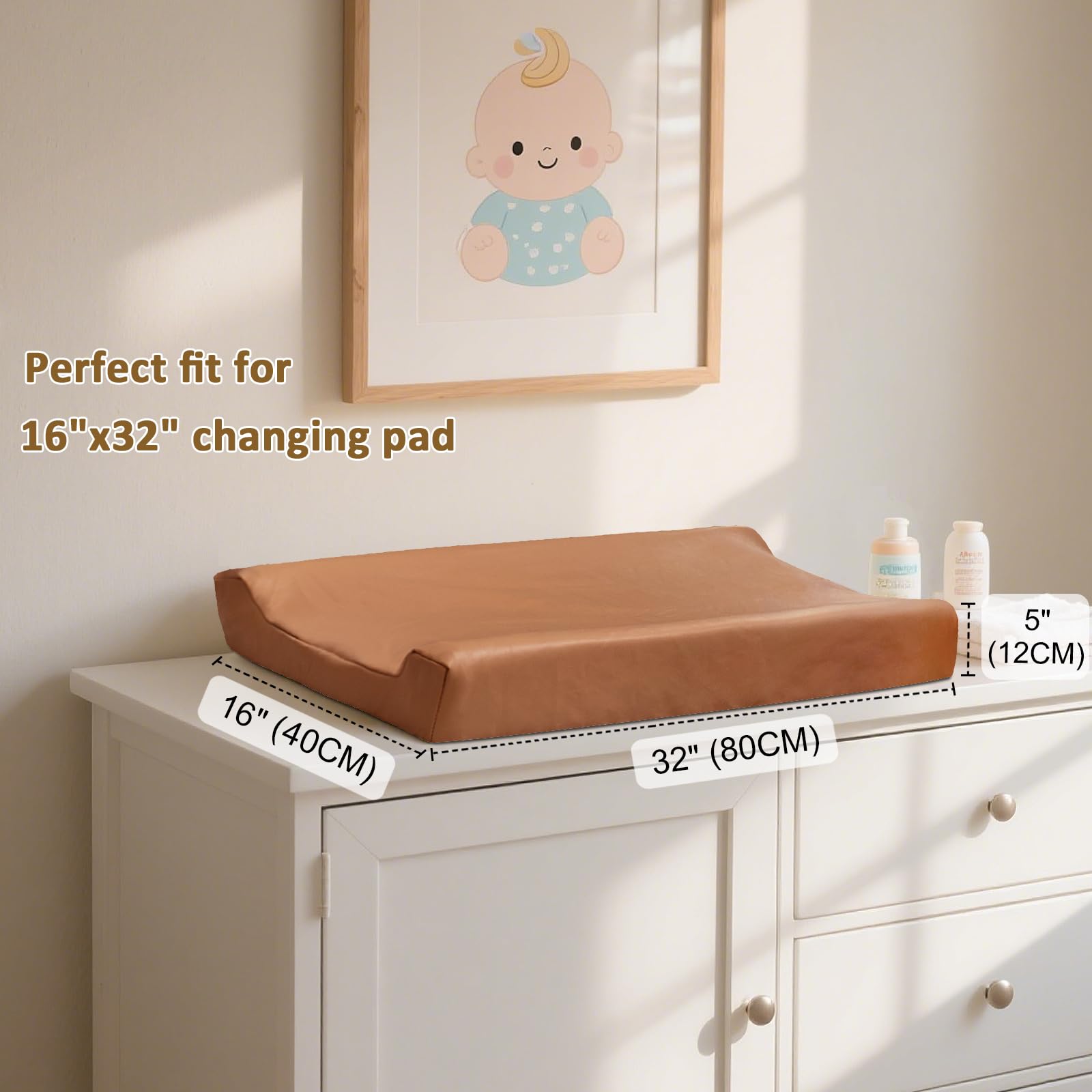- Waterproof Protection:Crafted with premium leather material,this changing pad cover creates a waterproof barrier,shielding your diaper changing table from leaks,spills,and messes while keeping baby's skin dry and comfortable