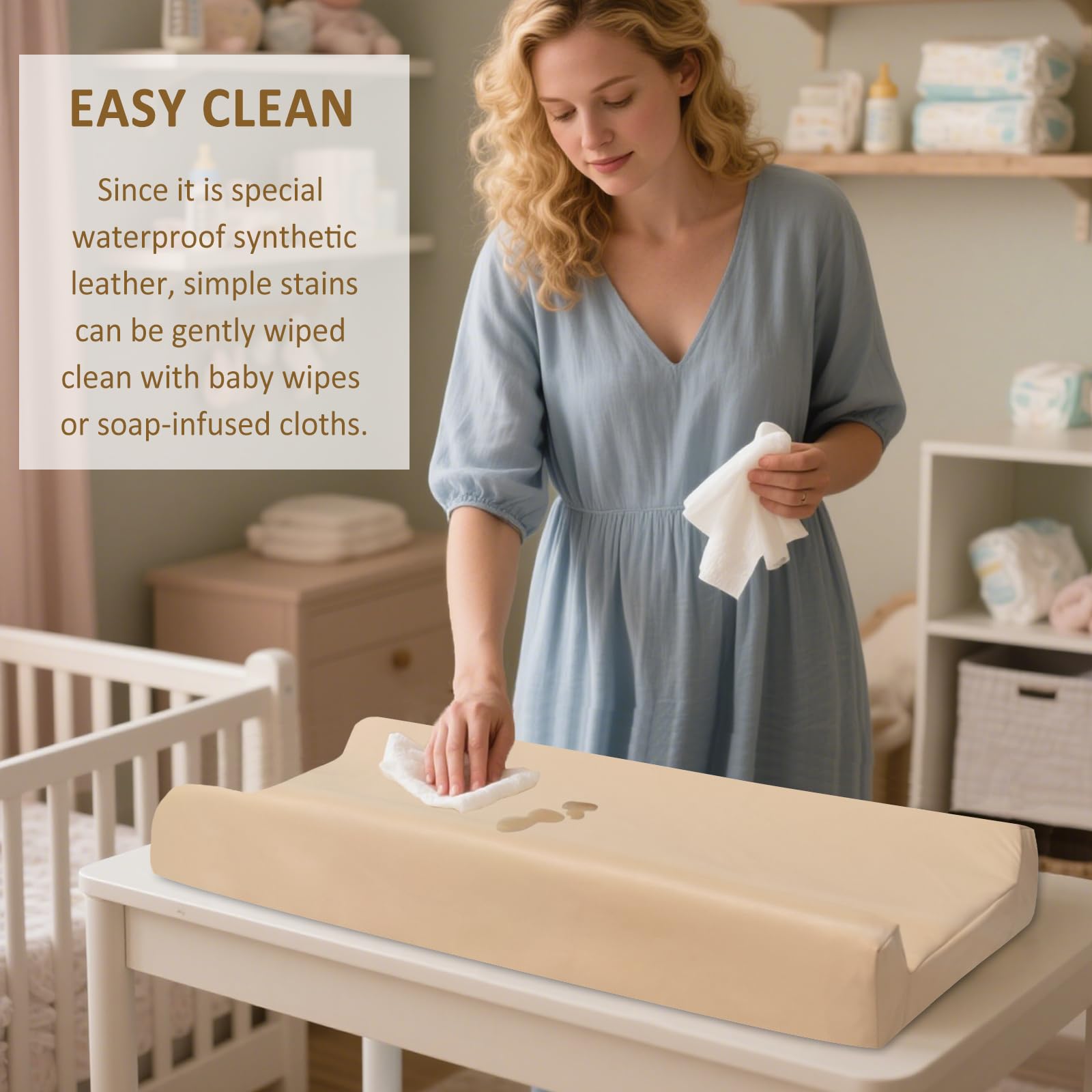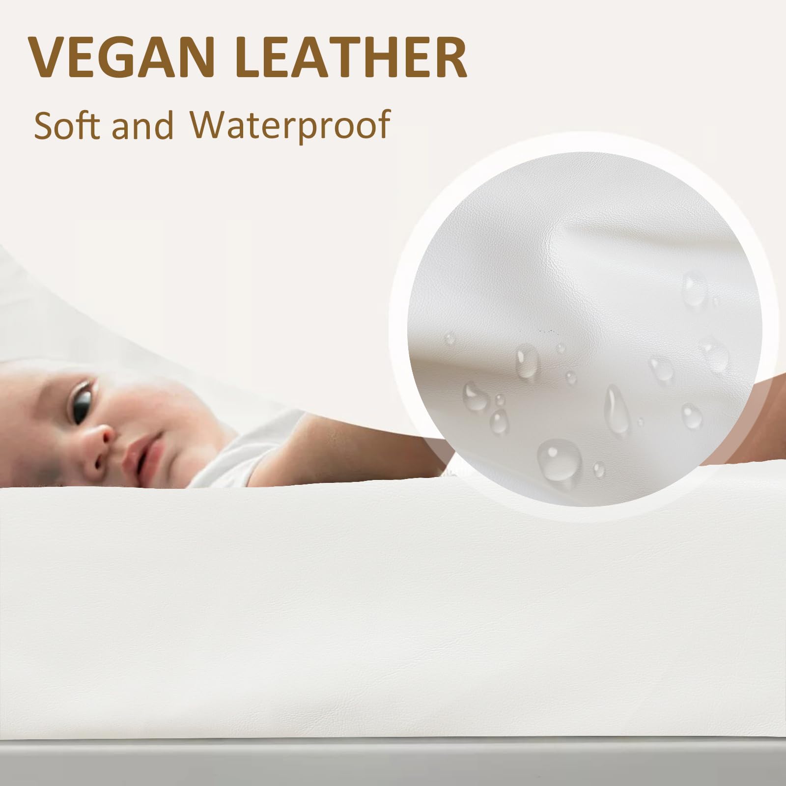 - Easy Clean Leather Surface:Wipe away accidents instantly with the smooth,non-absorbent leather fabric—no staining or lingering odors.Perfect for busy parents seeking hassle-free,waterproof changing pad covers that save time and effort