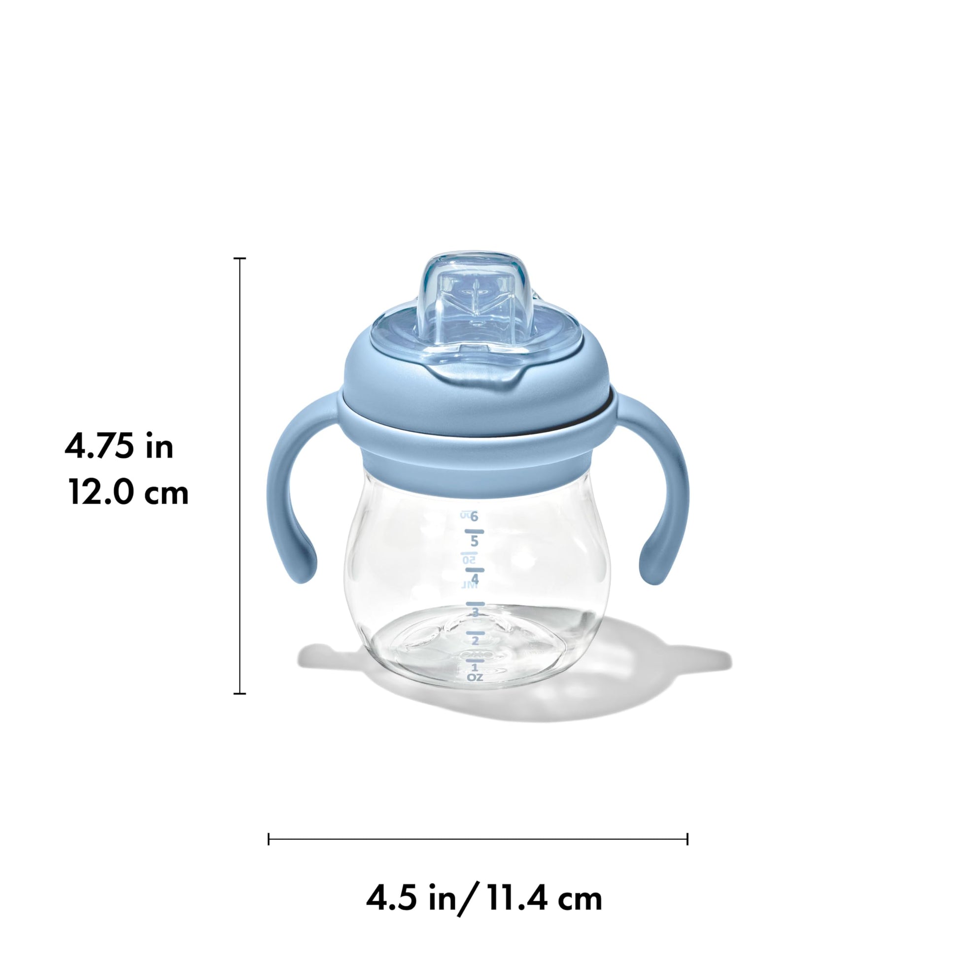 Smarter (and tougher) than the average sippy cup, the 6 oz. OXO Tot Transitions Soft Spout Sippy Cup has a silicone spout that conforms to baby’s mouth for a comfortable sip and less mess. Plus, the hinged cap closes to create a leakproof seal and protect the spout when not in use. The removable handles provide a comfortable grip for your little one, and the cap and spout are removable for easy, thorough cleaning. Dishwasher safe.