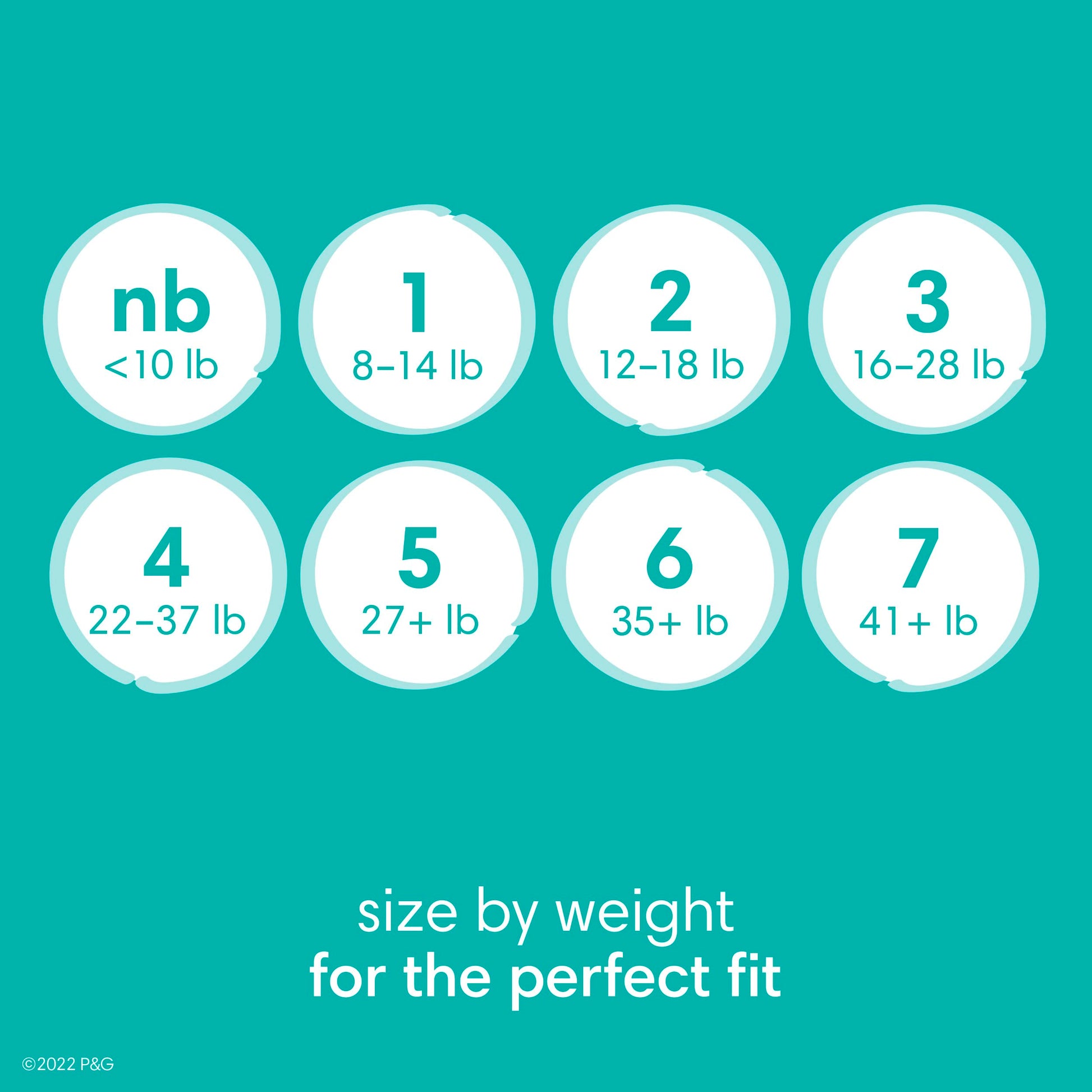 Give your baby everything they need from a diaper with Pampers Baby-Dry. The diapers with Dual Leak-Guard Barriers that give you up to 100% leakproof nights and happy mornings. That’s a diaper 2x drier than Huggies Snug and Dry. Protect your baby’s skin from wetness and mess with the Dry-Weave liner and know when it’s time for a change with the Wetness Indicator. The stretchy sides on Pampers Baby-Dry Disposable Diapers give your baby a secure and comfy fit that helps prevent leaks for more days full snuggles and free of mess. Pampers, from the #1 pediatrician-recommended brand, consciously crafts every diaper with your baby’s wellness in mind, Pampers Baby-Dry Diapers are hypoallergenic and contain no elemental chlorine, parabens, or latex. Use Baby-Dry diapers with our Pampers- Sensitive Wipes to keep your baby’s skin healthy. Pampers Baby-Dry comes in all the baby diaper sizes your baby needs at every stage—from newborn size to sizes 1–7. Just size by weight to find your baby’s perfect fit. Your number one priority is your baby’s well-being. Ours is giving you the best solution so you can focus on loving them. Pampers Baby-Dry Diapers come in all sizes, from newborn size (up to 10 lbs.), to size 1 (8–14 lbs.), size 2 (12–18 lbs.), size 3 (16–28 lbs.), size 4 (22–37 lbs.), size 5 (27+ lbs.), size 6 (35+ lbs.), and size 7 (41+ lbs.).