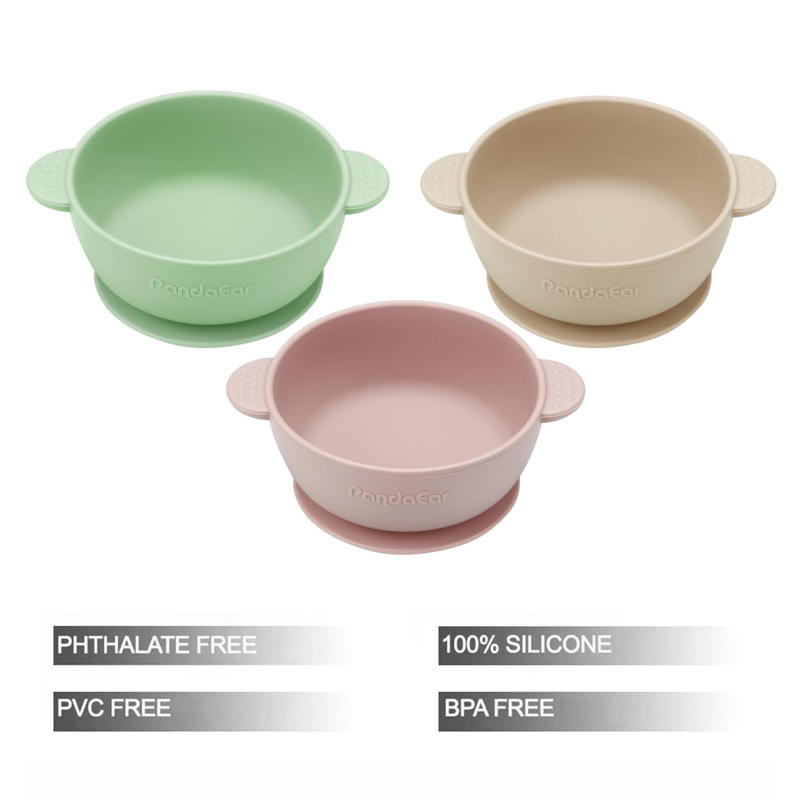 PandaEar 3 Pack Baby Bowls with Suction| Stay Put Silicone Food Bowl for Babies Kids Toddlers Infants| Food Grade Soft Safe BPA-Free Silicone (Pink)