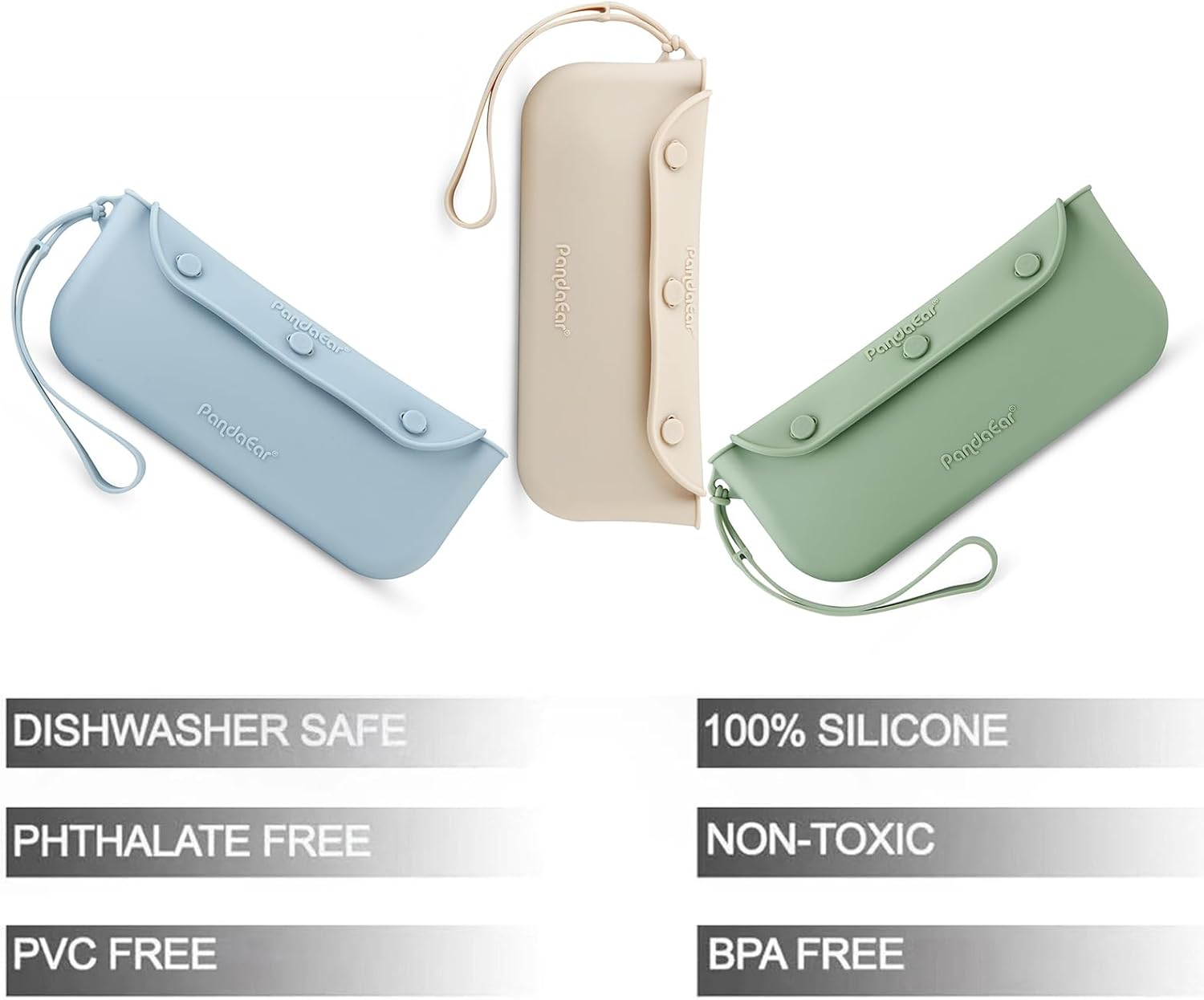 PandaEar's 3 Pack Silicone Baby Cutlery Holder Bags provide a practical solution for parents on the move, ensuring that your baby's utensils are always within reach and neatly organized.