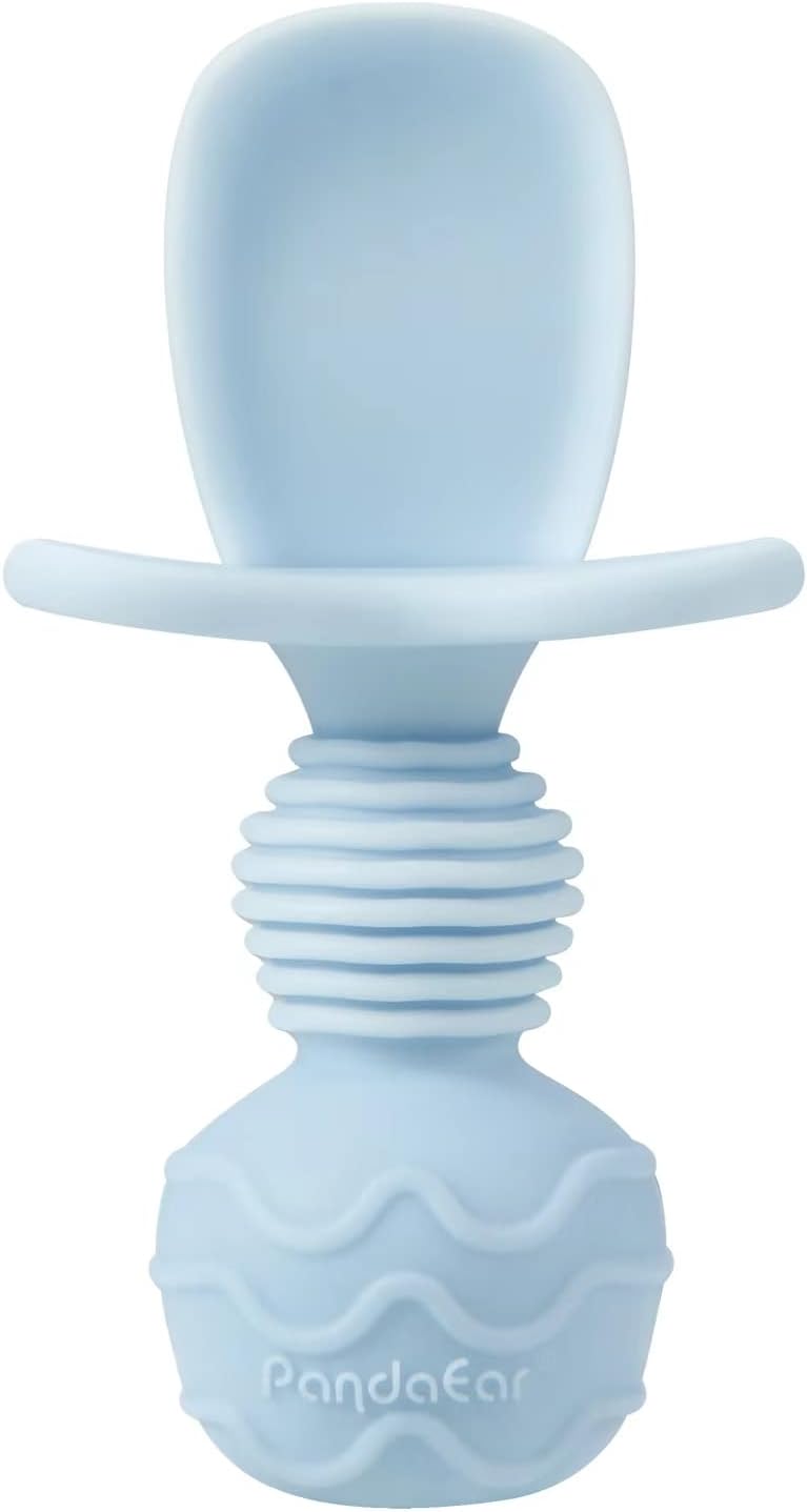 PandaEar 4 Pack Silicone Baby Spoons and Fork Feeding Set- Anti-Choke First Self Feeding Utensils for Baby Led Weaning Ages 3 Months (Cyan+Blue)