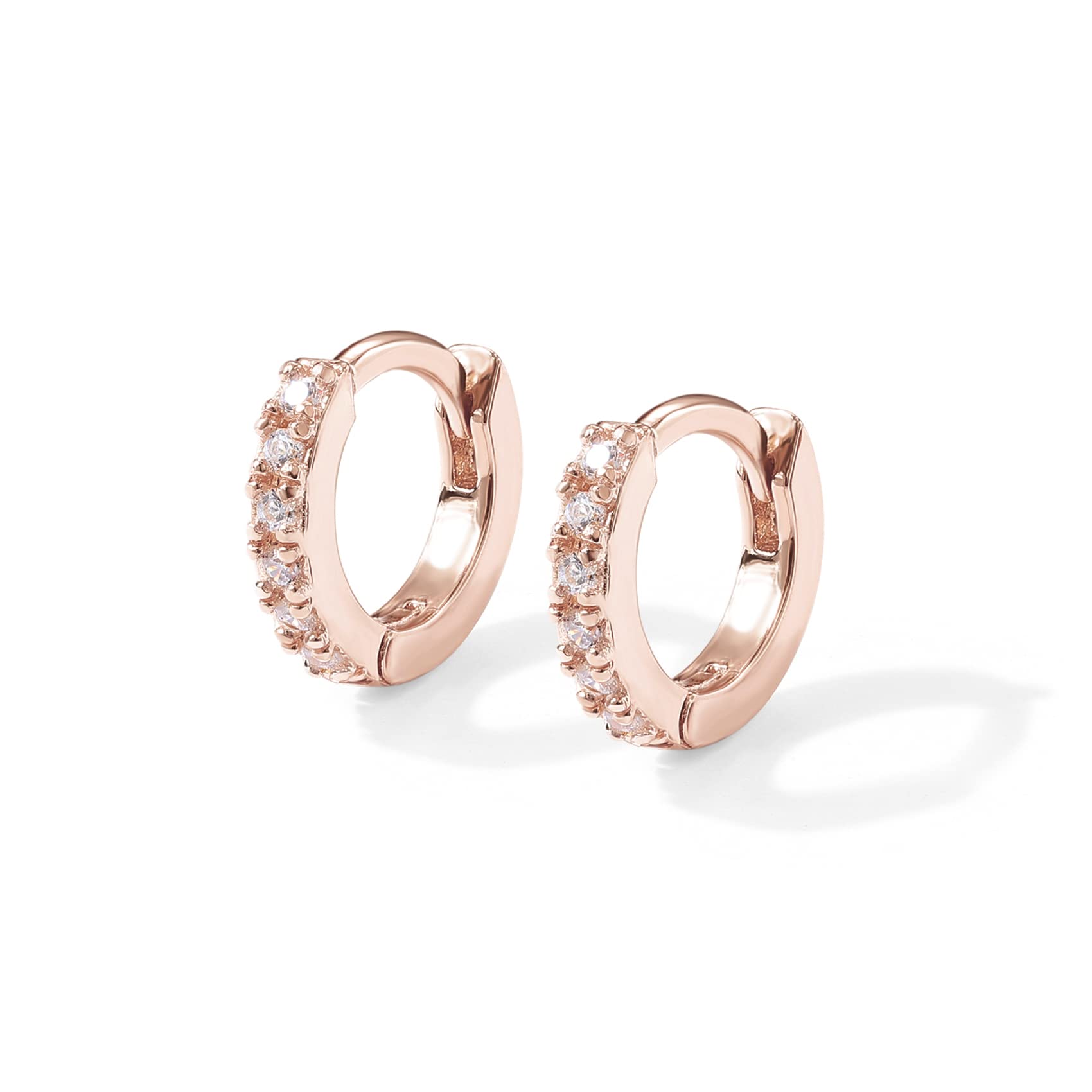 PAVOI 14K Gold Plated Sterling Silver Posts Cubic Zirconia Mini Huggie Earrings for Women | Tiny Cartilage Helix Huggie Hoop Earrings