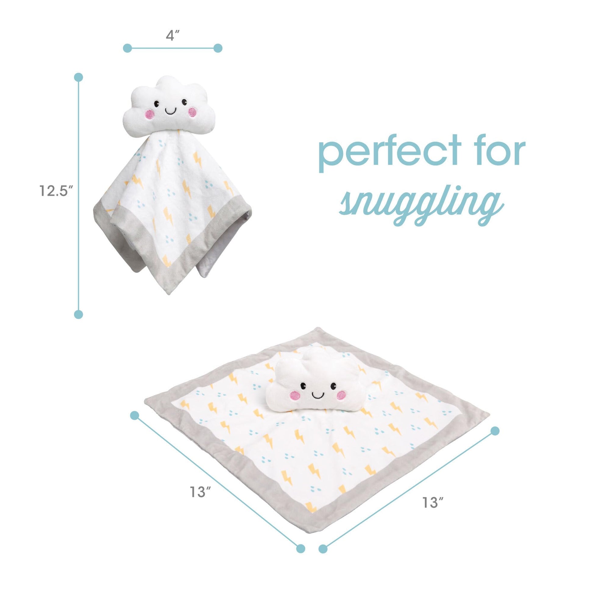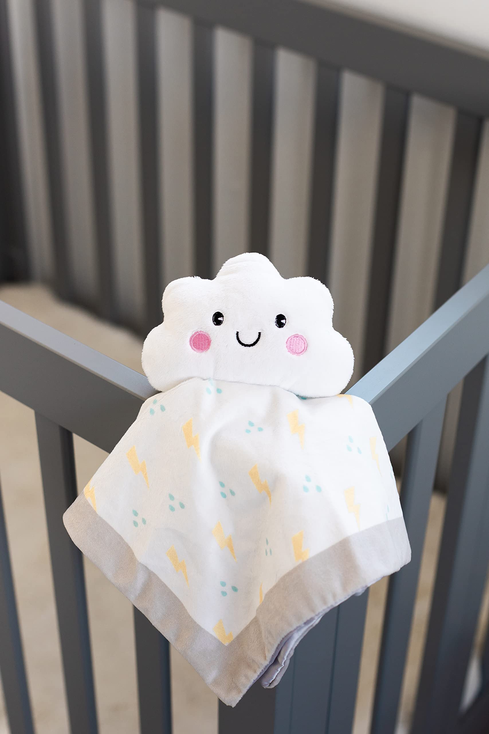 - Includes a soft polyester cloud blanket plush toy featuring an adorable lightning bolt and raindrop patter and a silky lining