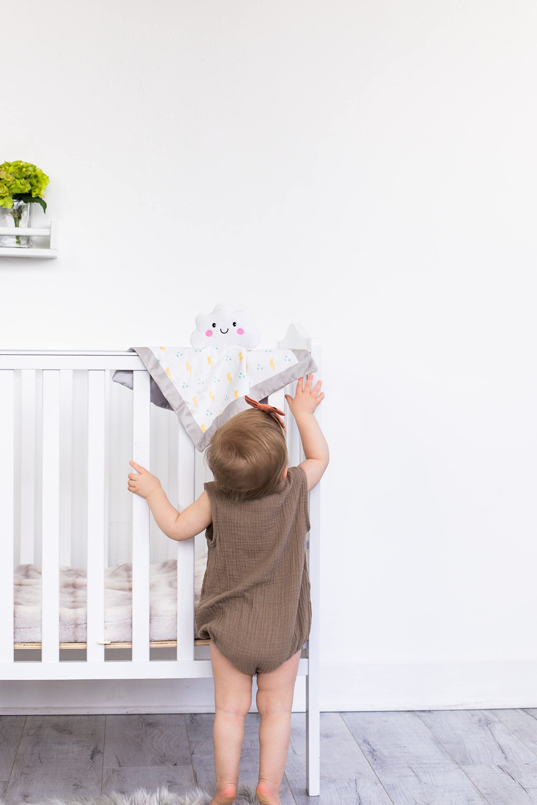 Give your baby girl or baby boy a sense of comfort and for years to come with this adorable lightning bolt and raindrop patterned white cloud snuggle blanket by Pearhead! Your baby will love holding onto their new cuddle blanket during playtime, bedtime, car rides or long stroller walks. This plush blanket toy is made of a soft polyester with a smooth, silky lining and features an adorable embroidered plush cloud for optimal play and comfort. Your baby will quickly fall in love with this baby blanket, making it a baby nursery must-have, baby travel necessity, play date necessity and everyday go-to! This plush baby toy blanket is the perfect new mom gift, expecting mom gift, expecting parent gift or addition to your own baby shower gift registry! At Pearhead, we aim to create genuine, quality products to celebrate your special moments in life. We are a family of designers, marketers, and trendsetters bringing products to life that will bring a smile to your face. From concept and design to production and customer service, the Pearhead team works together seamlessly every step of the way. Whether your baby is celebrating their first year of life, you are announcing your pregnancy, or your pup is celebrating his first holiday season, Pearhead is here to share your moments in style. Blanket Dimensions: 13" x 13"