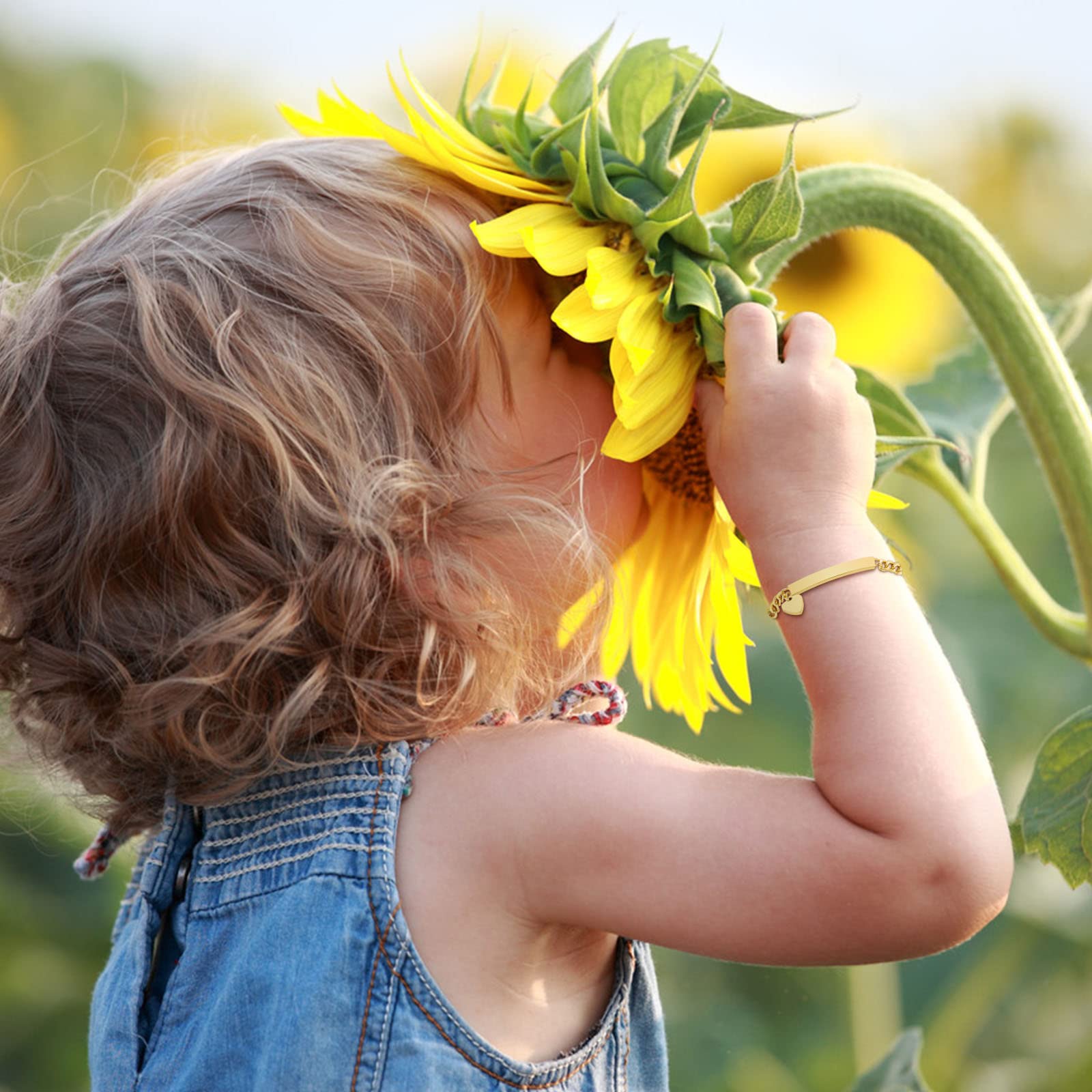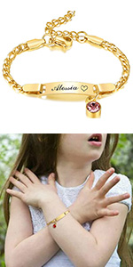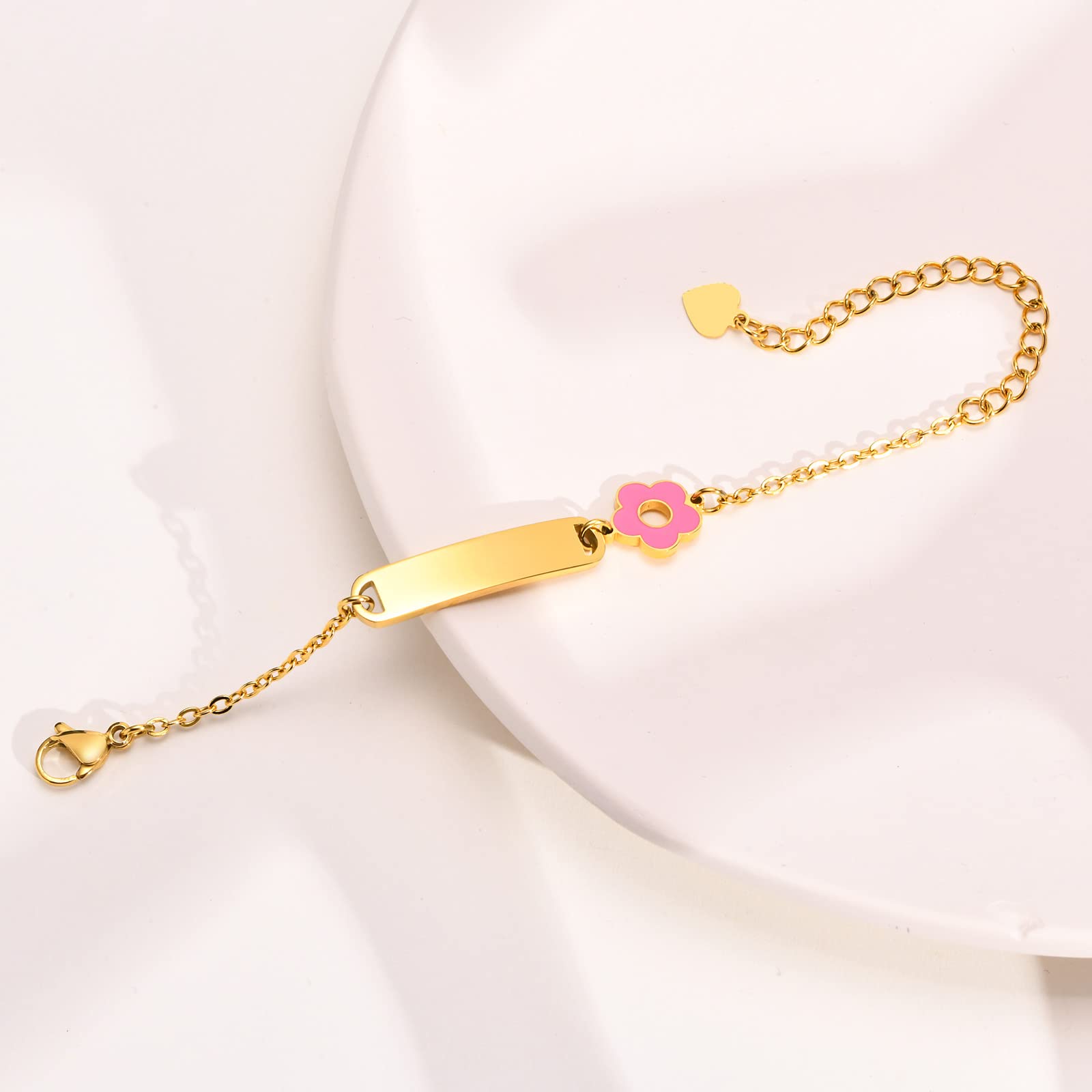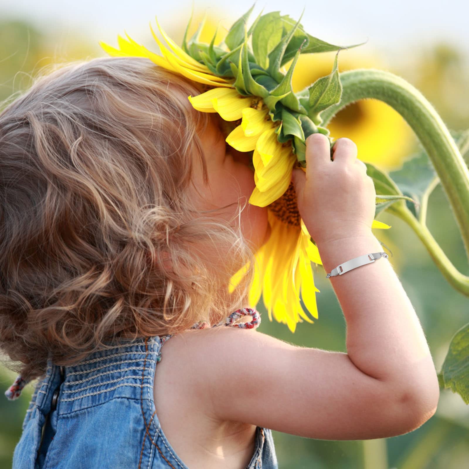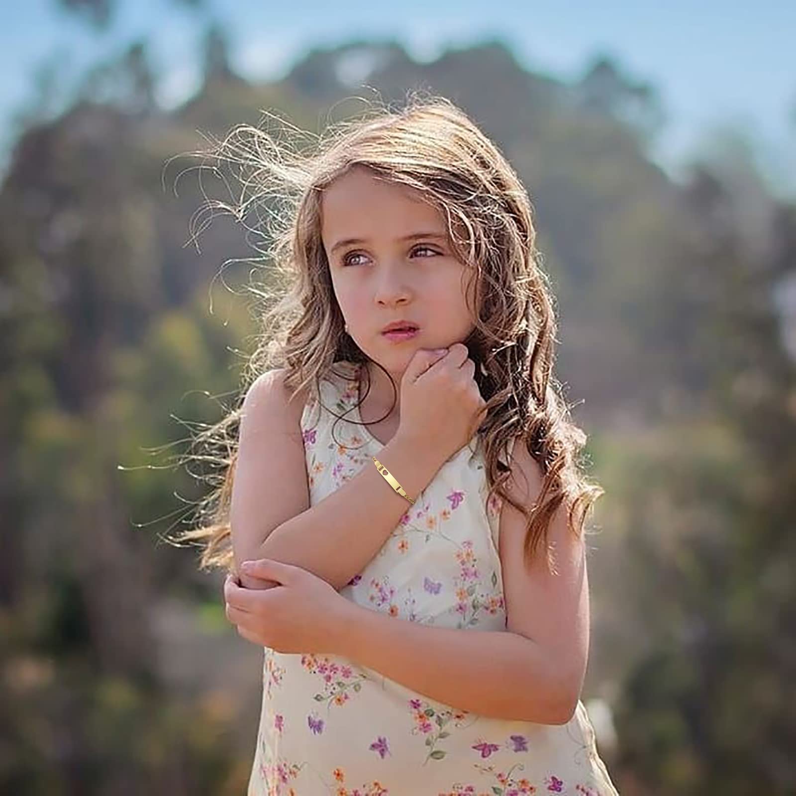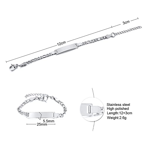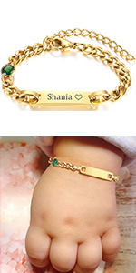 - This polished stainless steel Identification Bracelet is perfectly designed for infants & toddlers. It is a simple and stylish yet elegant piece for your kids. This link chain bracelet will really bring a lot of attention and praise to your child. You can personalize a name or birthday on the ID plate for a more unique gift idea.