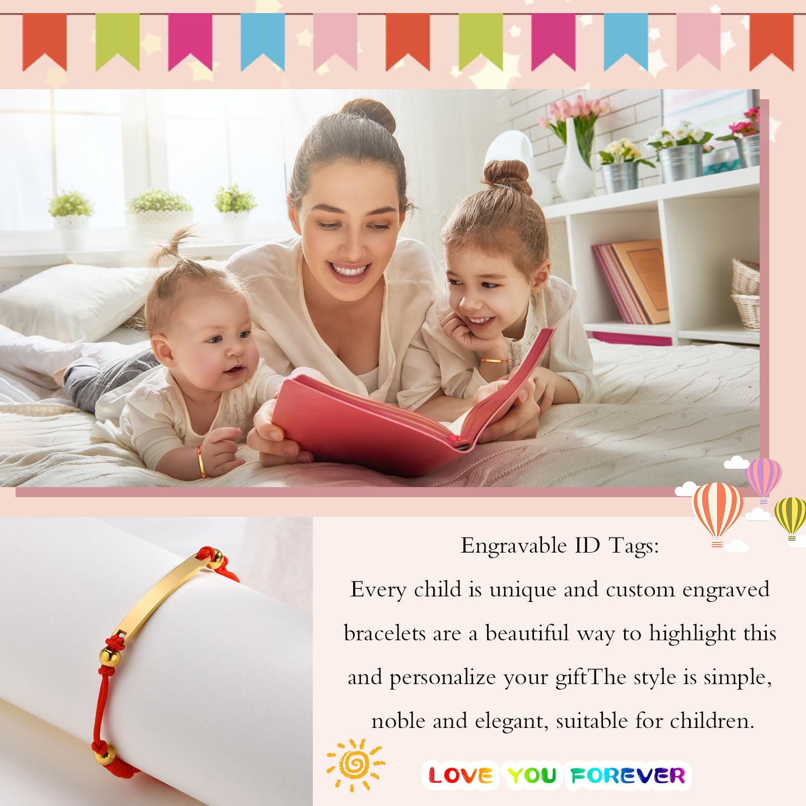 Personalized Baby Bar Bracelet : 18K Gold Plated Custom Name ID Plate Bracelet for Children Toddler from Mom, Engraved Kid Name for Daughter Son, New Born Birthday Gift,Adjustable,Nickel free