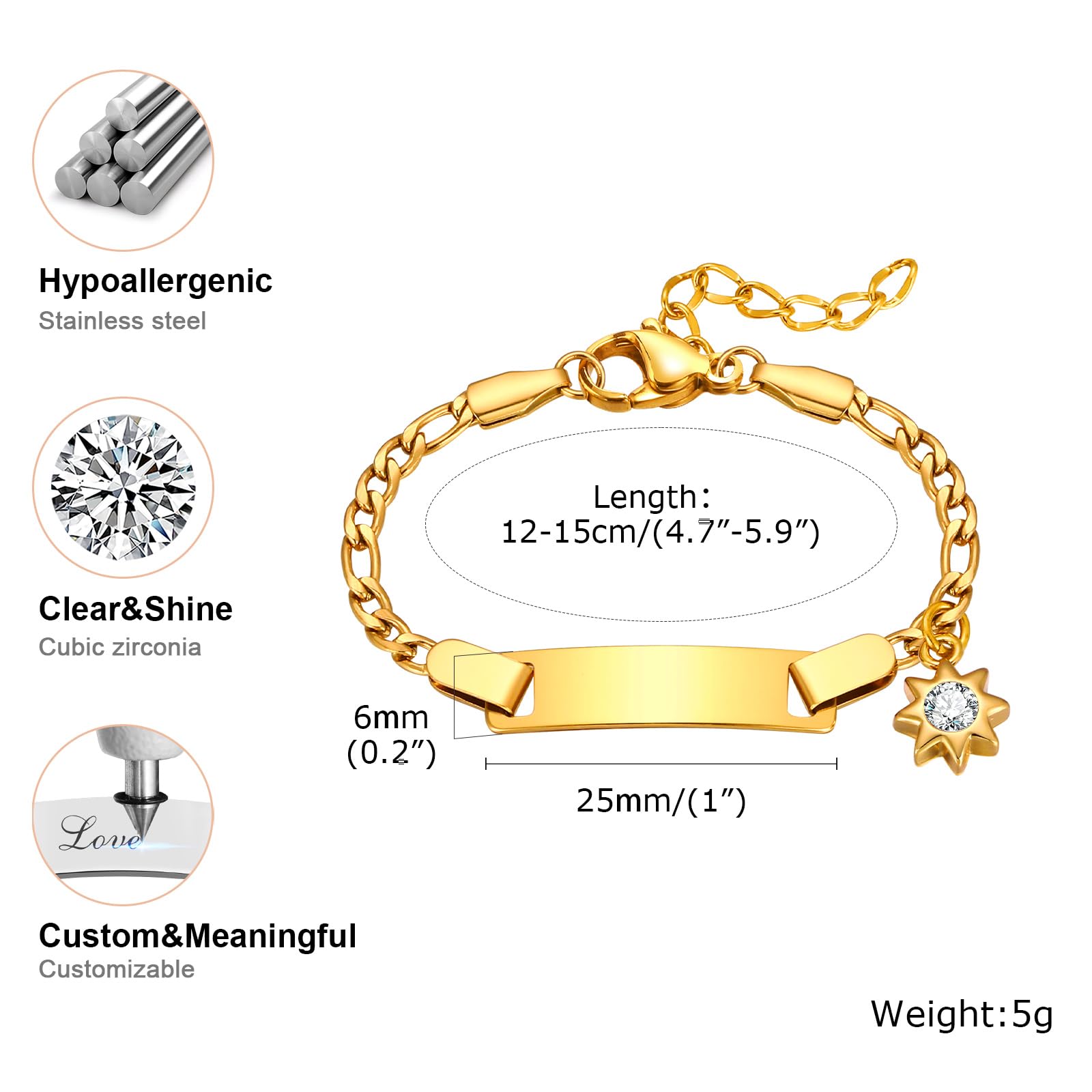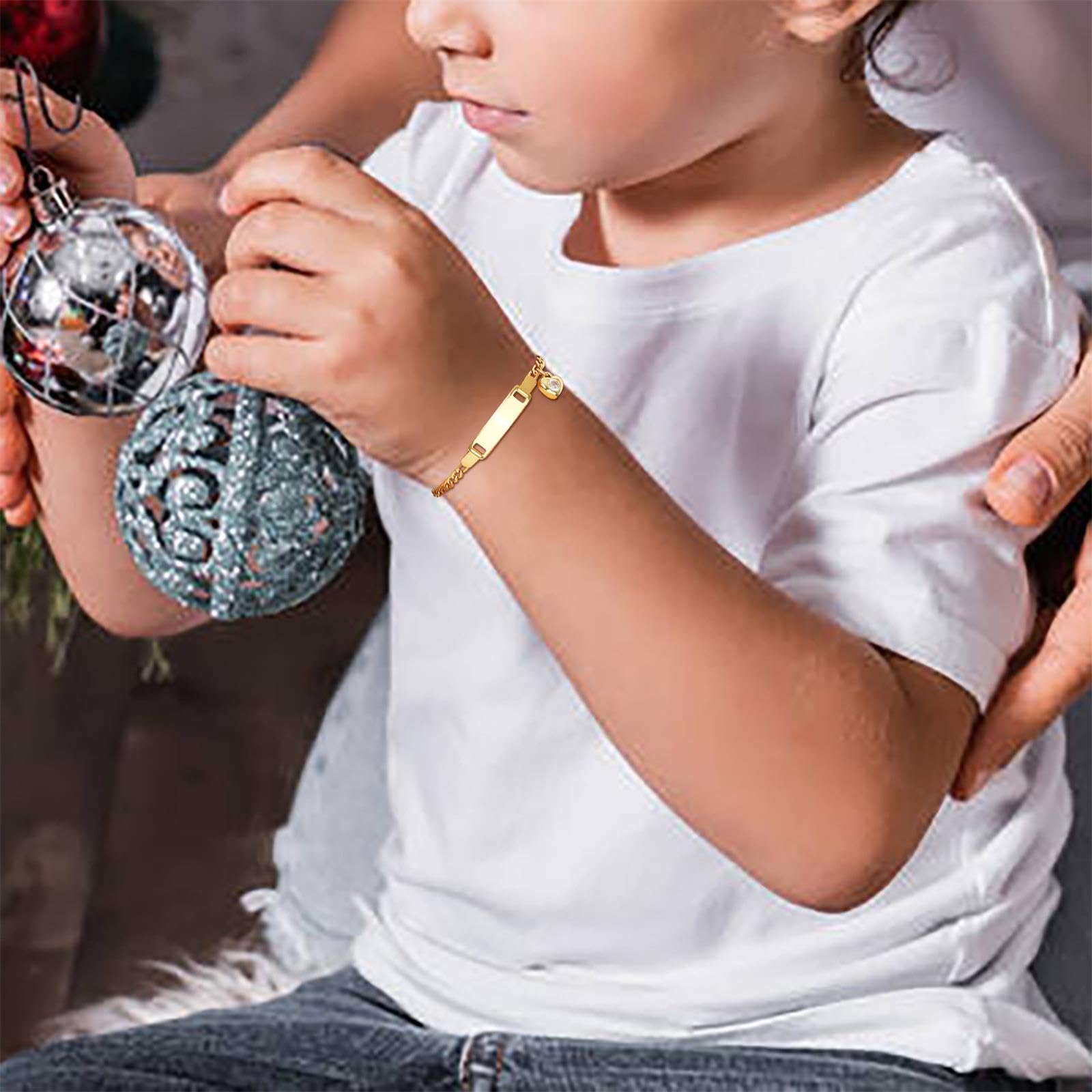 - [Personalized Customization]: Make each child bracelet unique by engraving your boys/girls' name, message, or special date on the ID plate. Whether it’s a birthday, a special achievement, or just a loving message, the custom engraving makes it a one-of-a-kind keepsake.