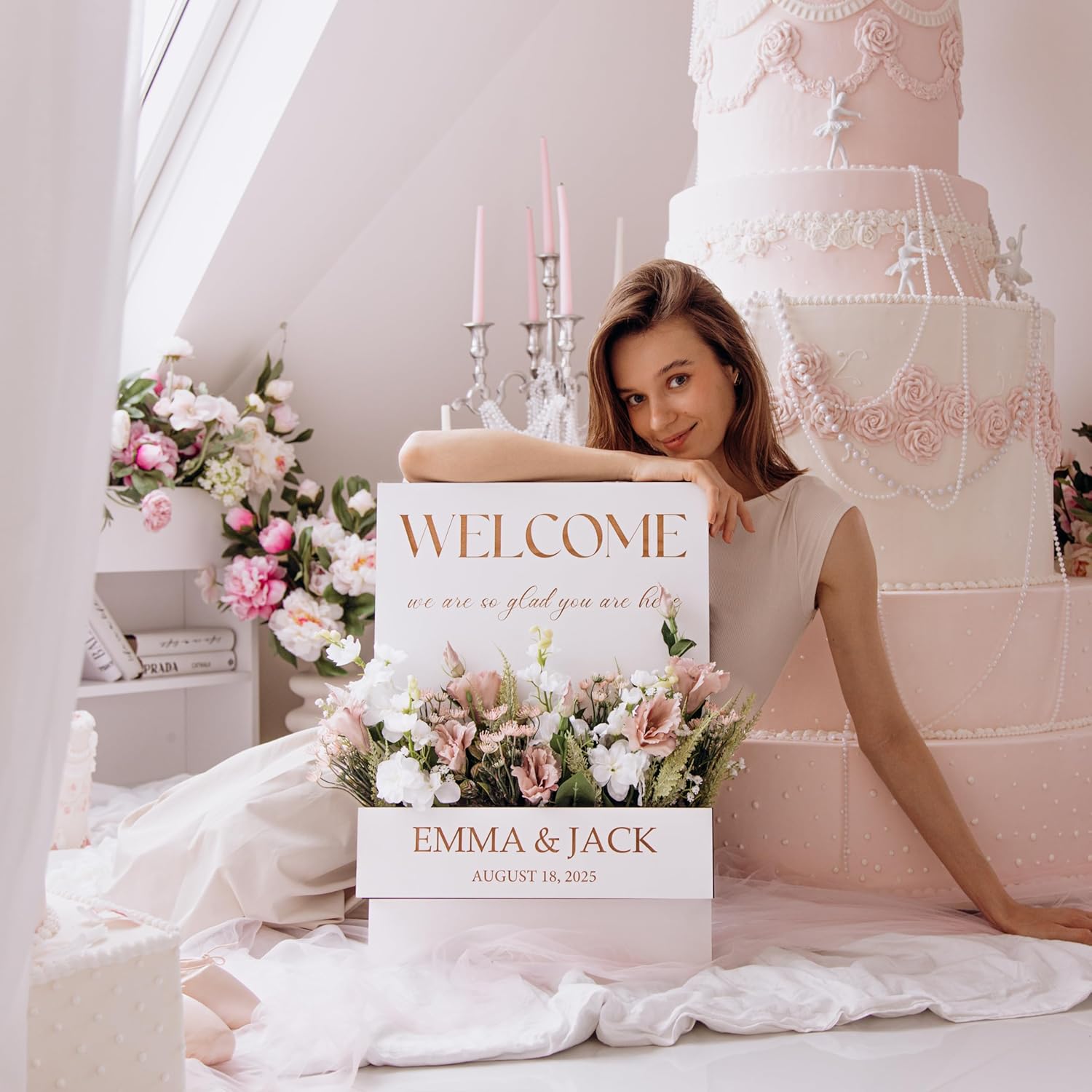 - 🌸 Beautiful wedding welcome sign with flower box – ideal for entrances, ceremonies, or photo areas.