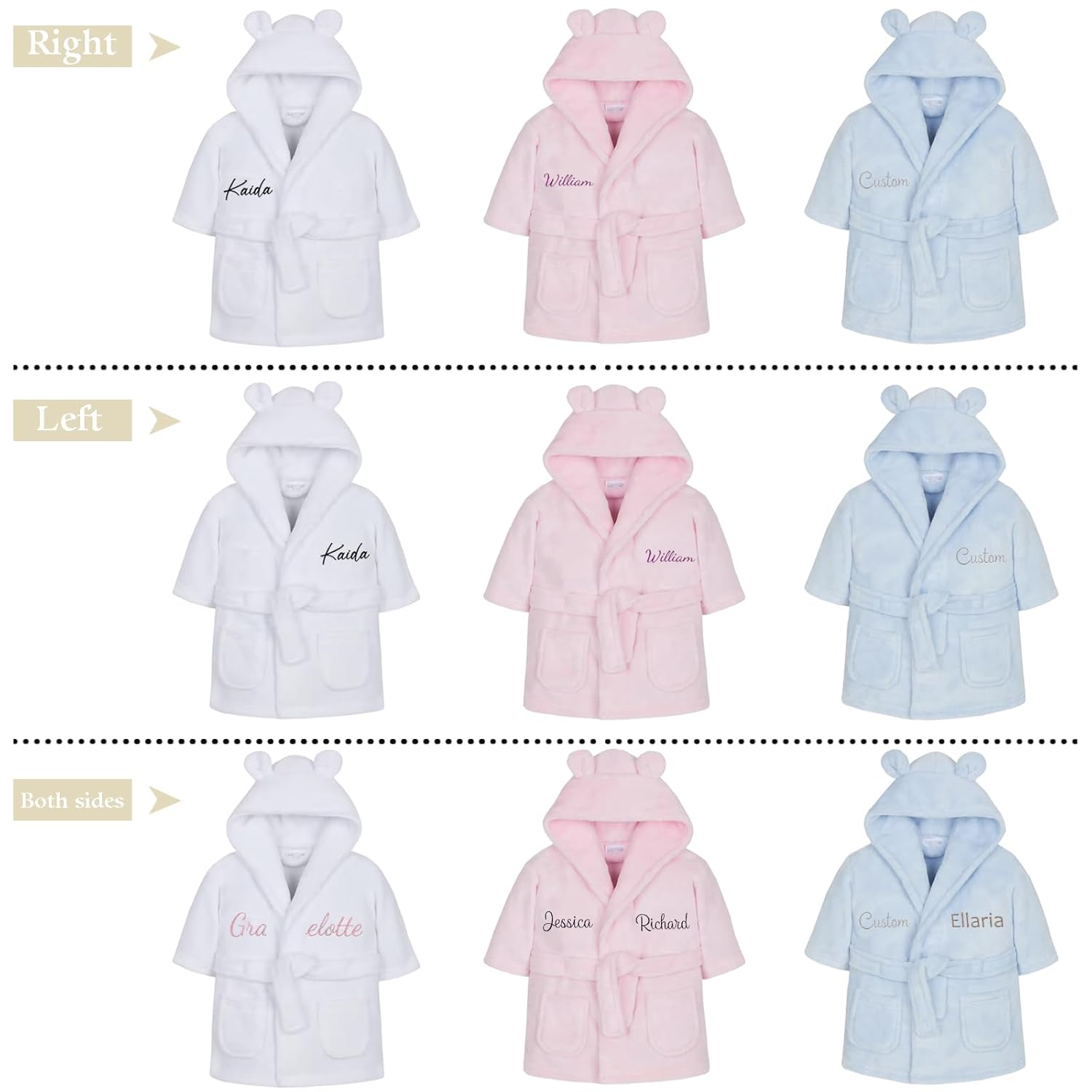 - 【Fine Embroidery】We provide fine embroidery customization service, you can customize the baby name or nickname on the kid robes for boys & girls. Premium fine embroidery adds a unique little design to this cute boys hooded bathrobe. A variety of cute fleece robe sizes and colors to choose from, click on ‘’customize” for a special custom kids fleece robe your baby boy or girl