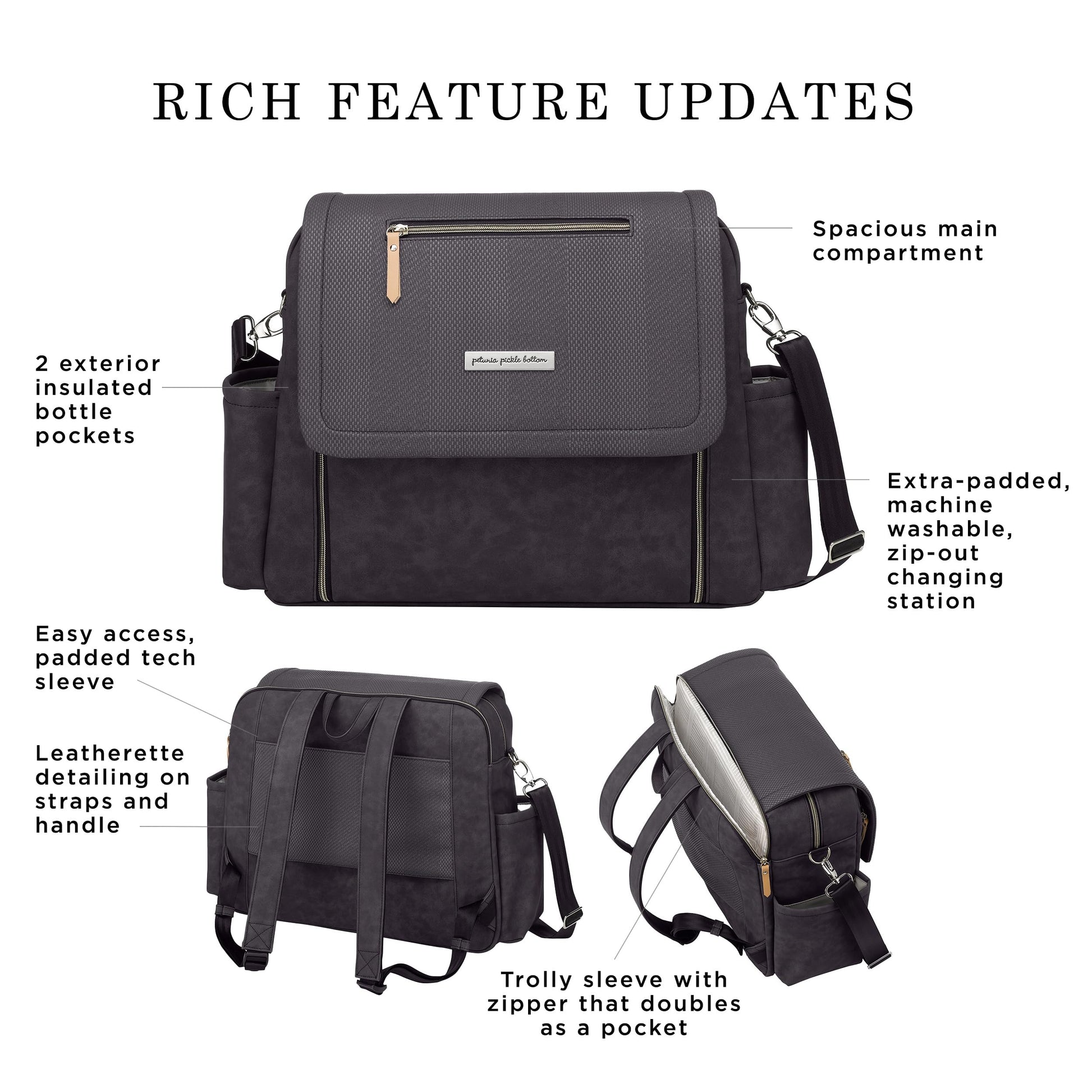 - PETUNIA PICKLE BOTTOM – Diaper backpacks and shoulder bags plus versatile accessories that keep essentials organized and ready such as packing pouches, cosmetic cases, pacifier holders, bottle holders, and stroller clips all are well crafted and ready for any outing from baby and beyond.