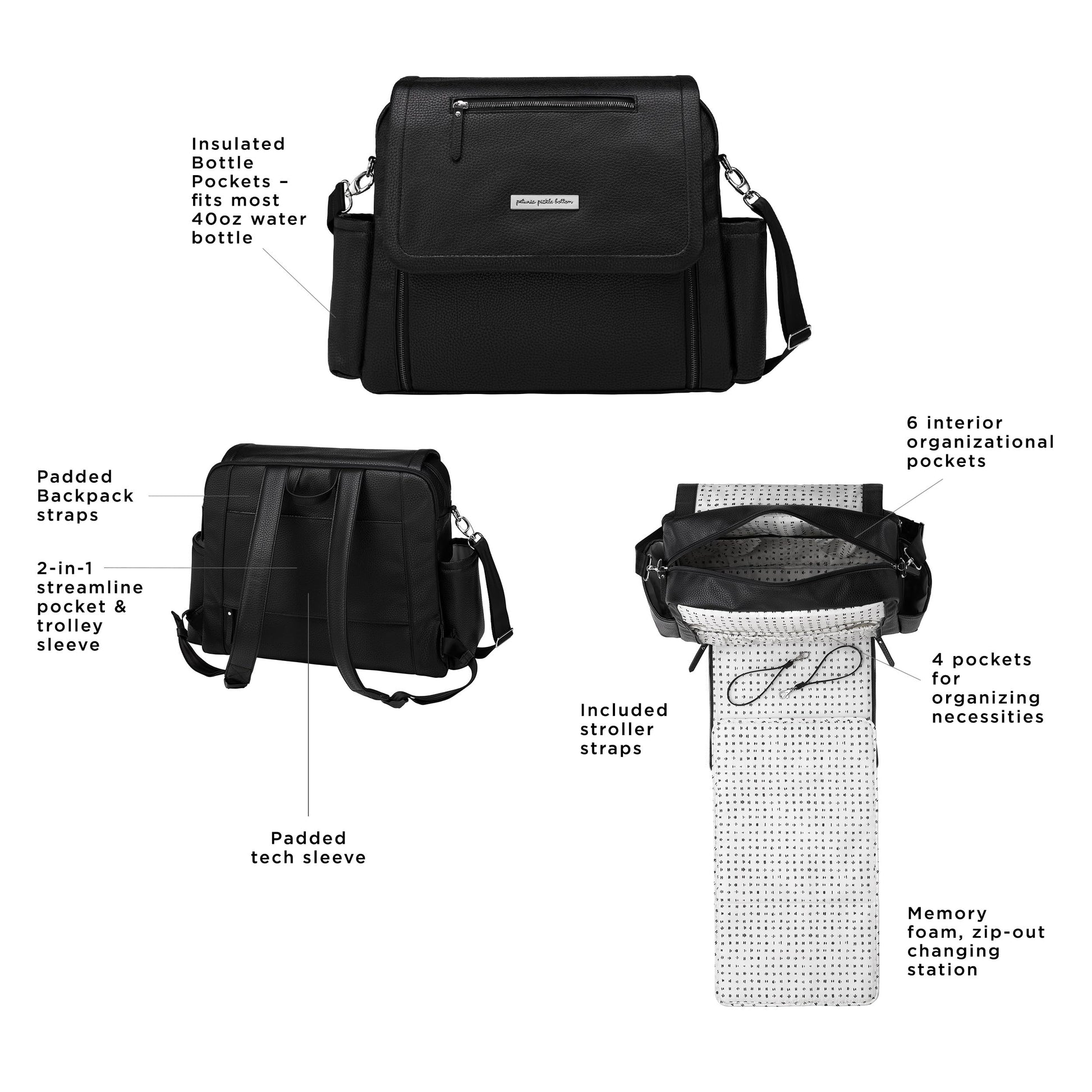 - FASHIONABLE & FUNCTIONAL – Don’t compromise on style or practicality. Our backpack’s efficient design has an extra roomy interior and a zip-out changing area. Its chic look will make people think you’re toting a designer bag instead of a diaper bag!