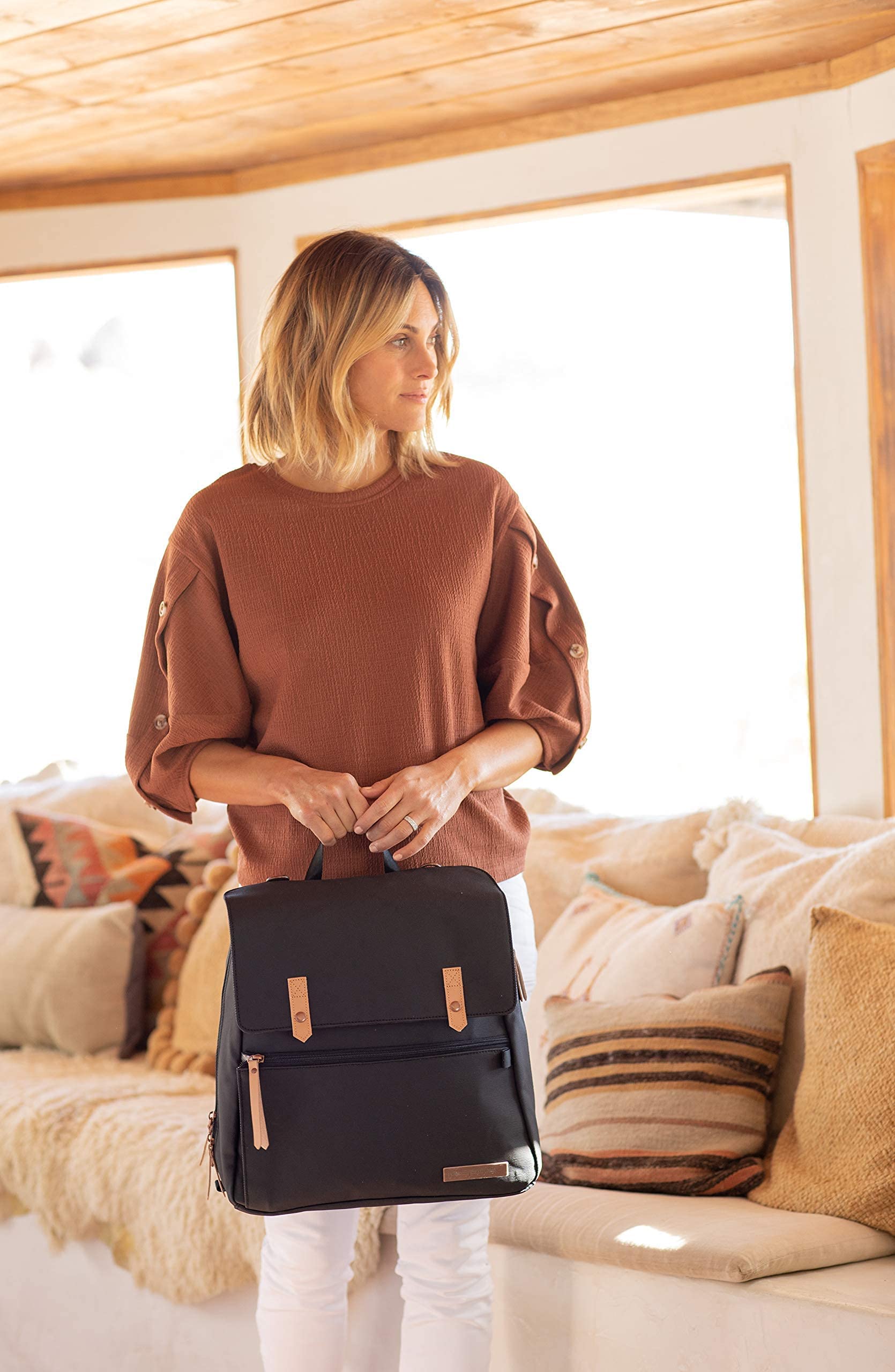 - EASY TO CLEAN AND CARRY – Our Backpack has at top grab handle, trolley sleeve for travels, padded backpack straps, and D-rings to attach to a stroller. The coated cotton canvas exterior can be wiped down and the interior lining is water resistant.