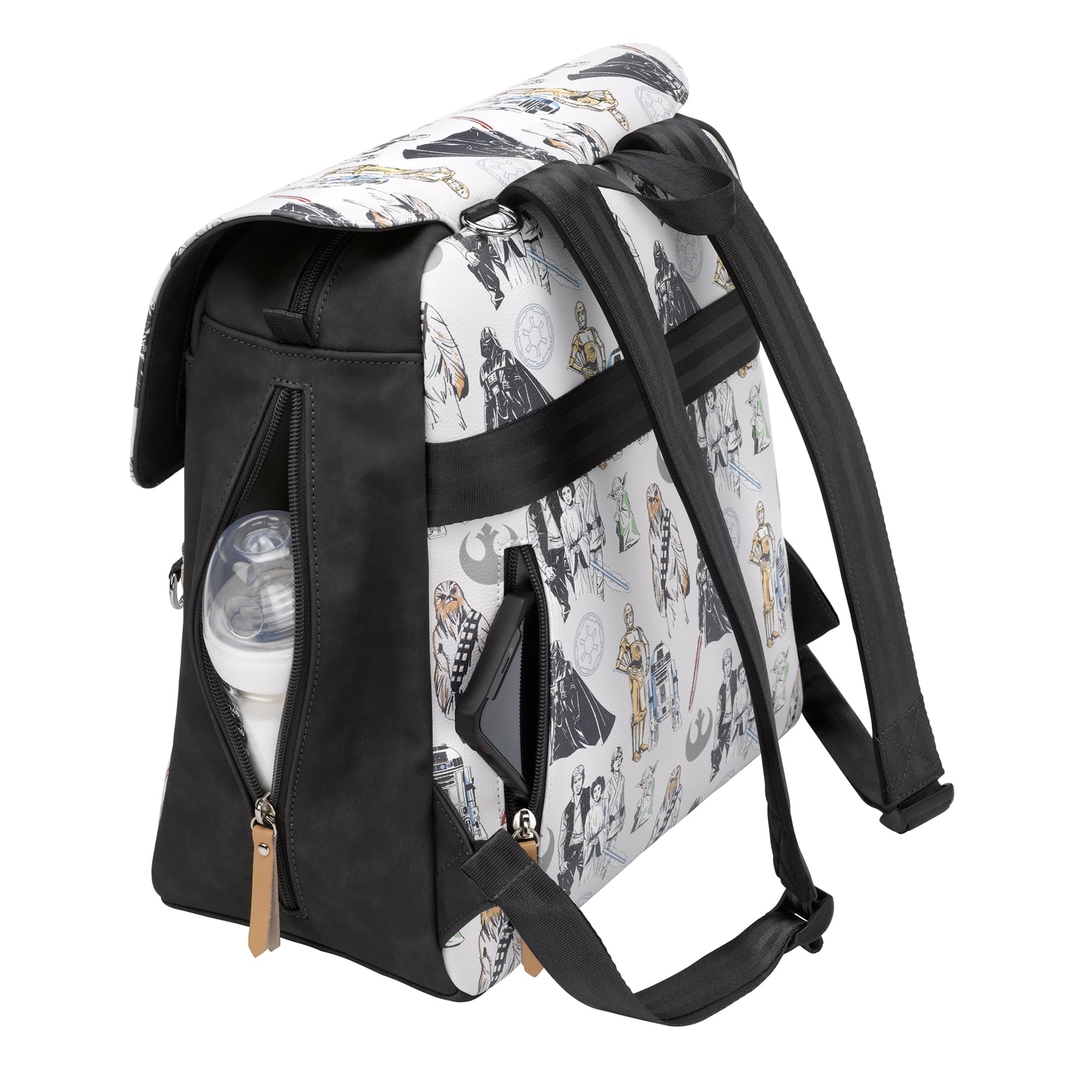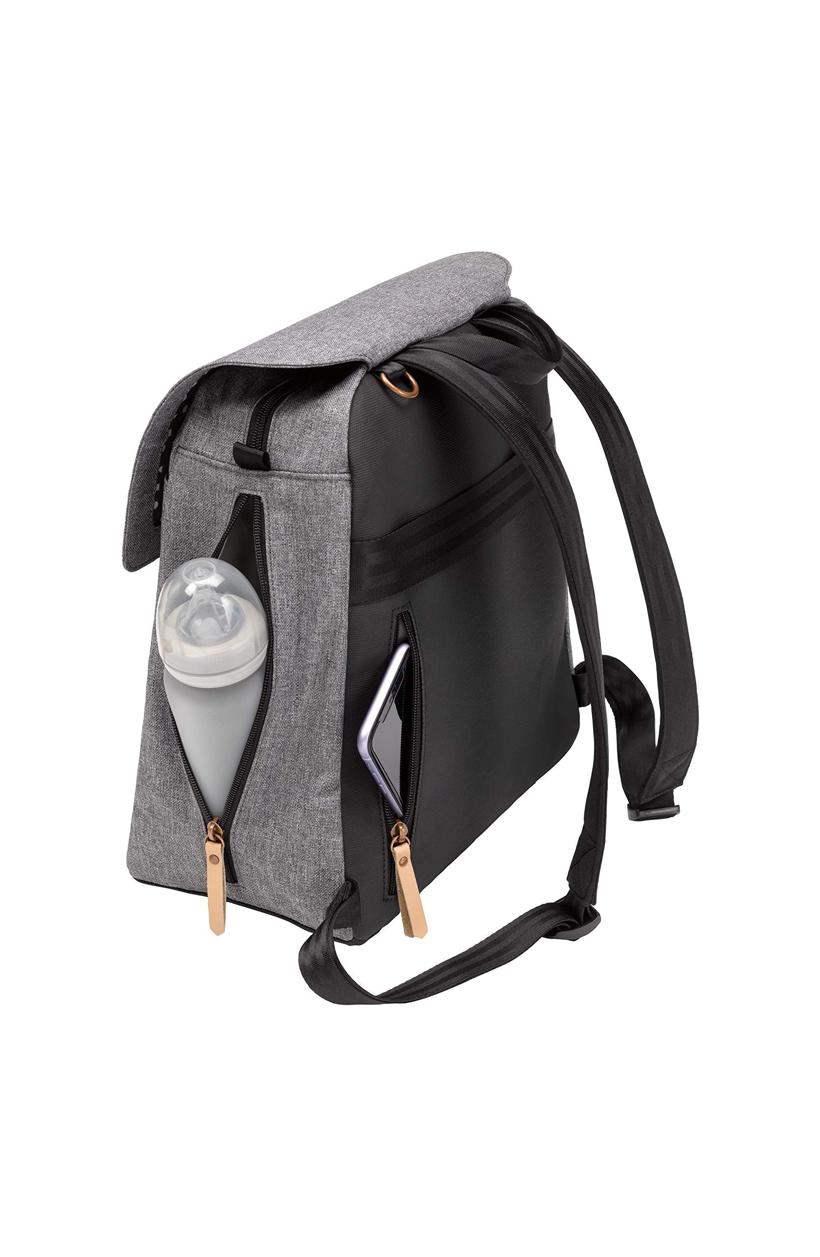 Unzip this sleek and stylish diaper bag to discover insulated compartments, a padded tech sleeve, and cleverly designed internal pockets that keep your essentials at the ready.