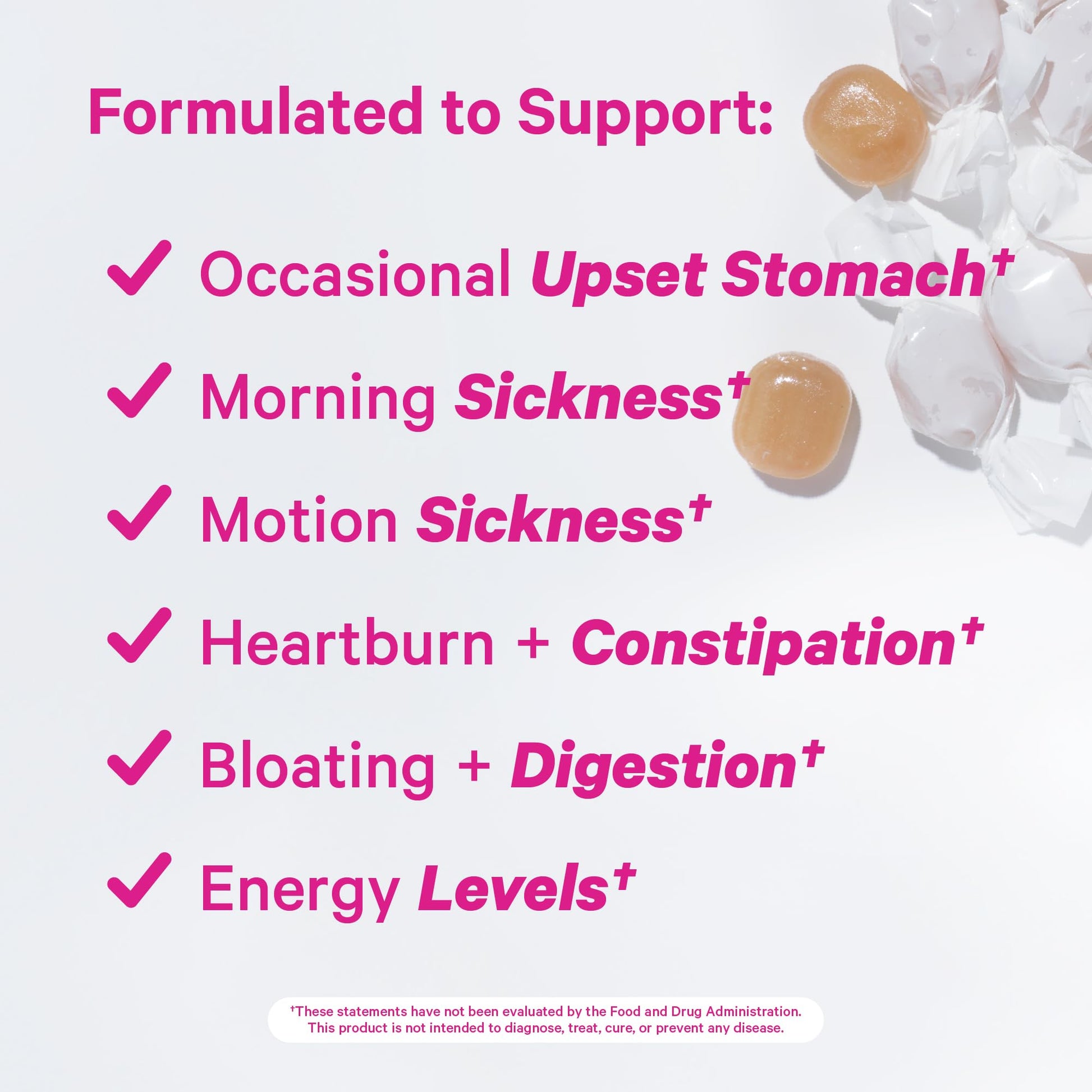 - Not just ginger candies! Organic ginger root is a superfood to help with morning sickness for pregnant women and ease pregnancy-related digestive issues, including gas and constipation. Don’t stick to Ginger Ale - level up with our sweets.