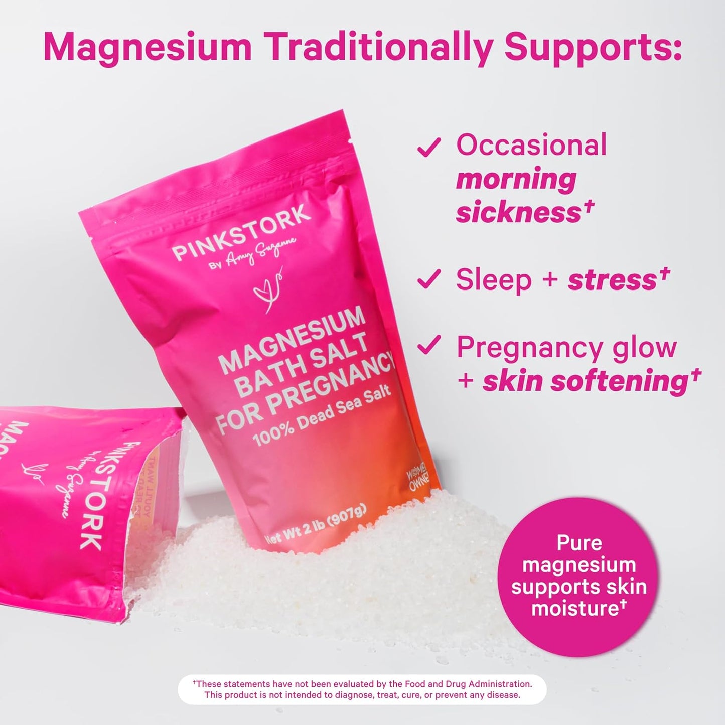 - SOAK: Pink Stork Pregnancy Bath Flakes are a highly-concentrated magnesium bath soak with pure magnesium chloride flakes. An excellent alternative to Epsom salt for soaking, we’ve designed these to support prenatal care through each trimester! From the woes of morning sickness to labor and delivery prep - our magnesium Flakes are for you.