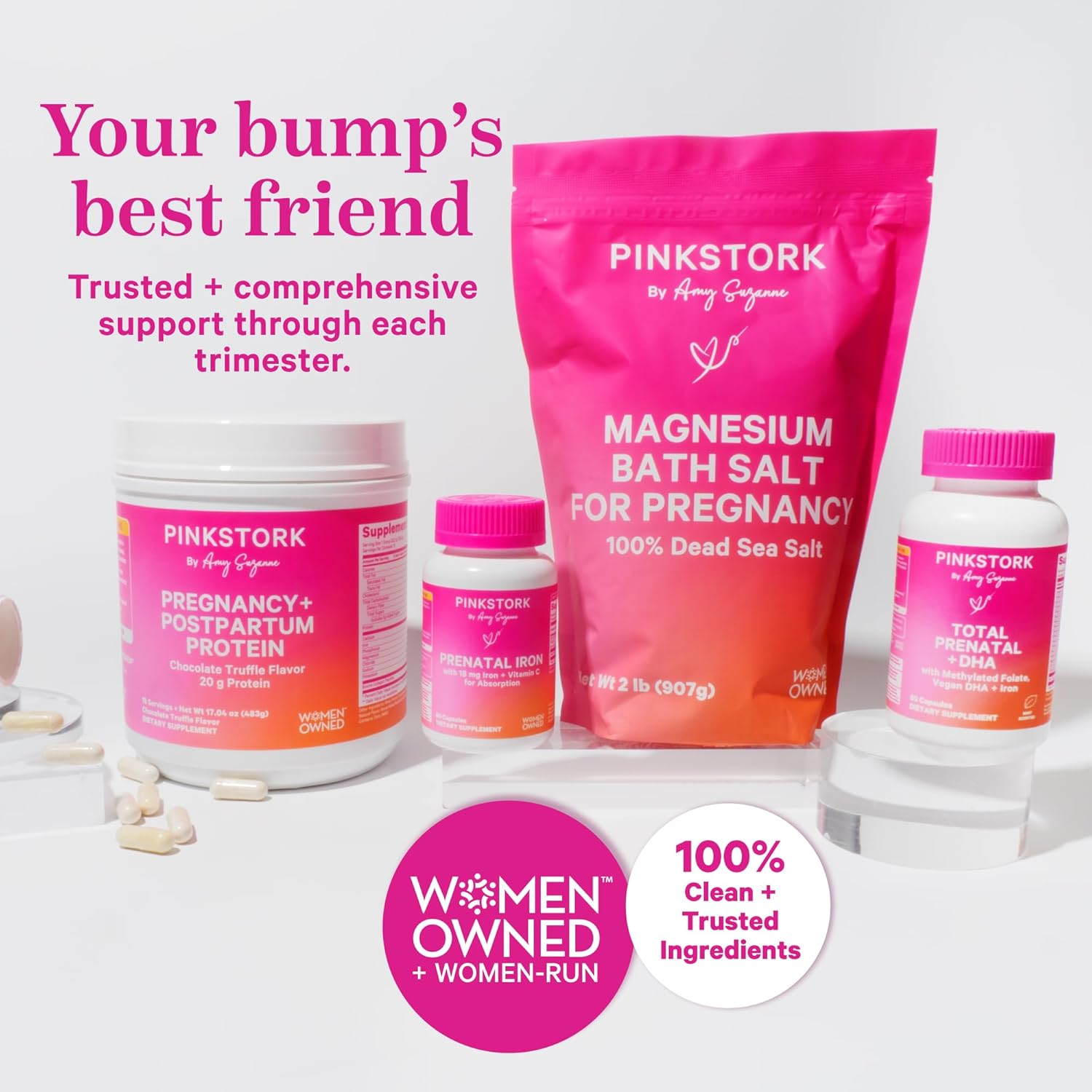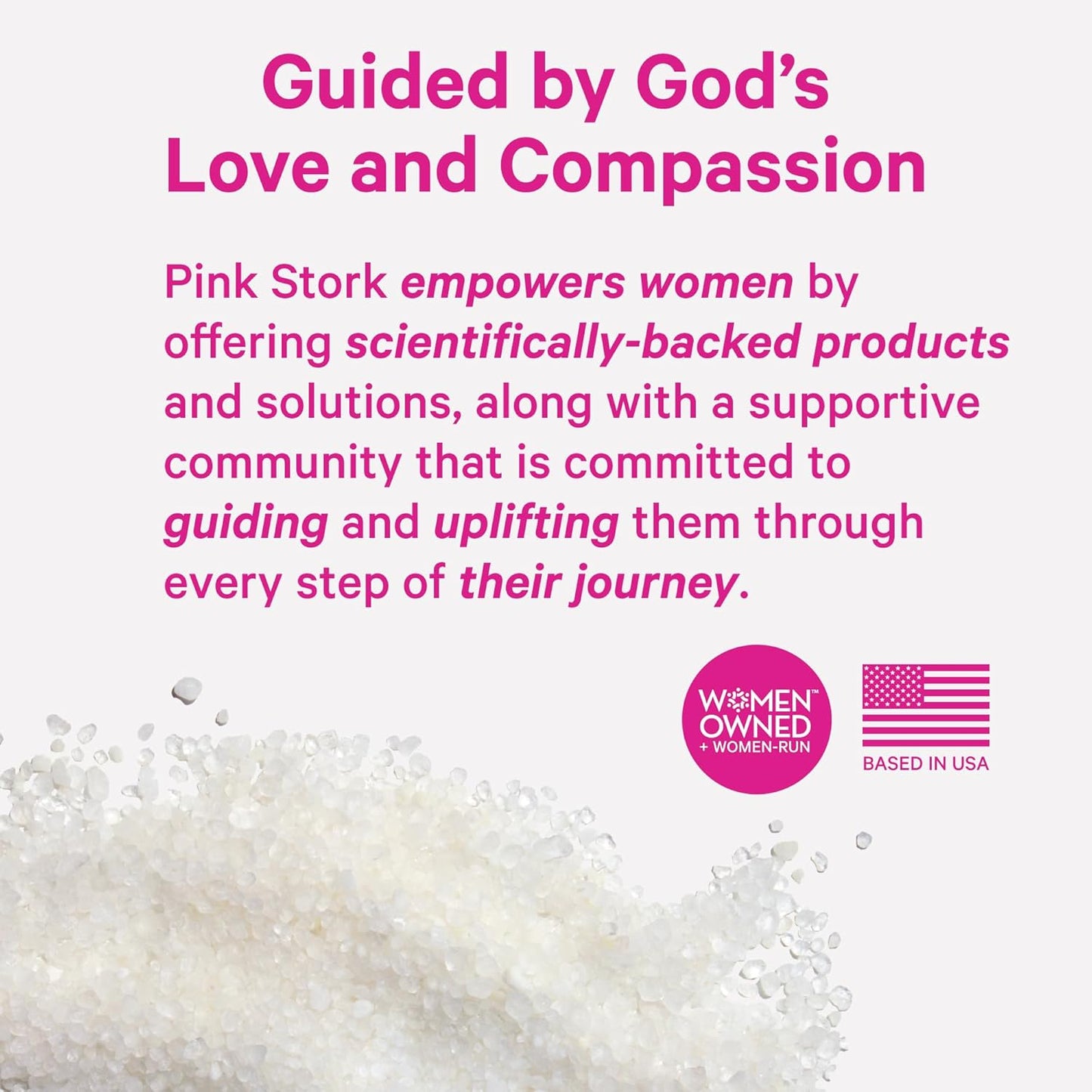 - WOMEN-OWNED, WOMEN-RUN: Our founder and CEO, Amy Suzanne, is a mom of 6 children and knows how important it is to give new moms products you can trust. Over 80% of our employees are women, and we create clean, trusted, and effective products for every stage of a woman's journey. We are on a mission to provide women with hope and positively impact everyone that comes in contact with Pink Stork.