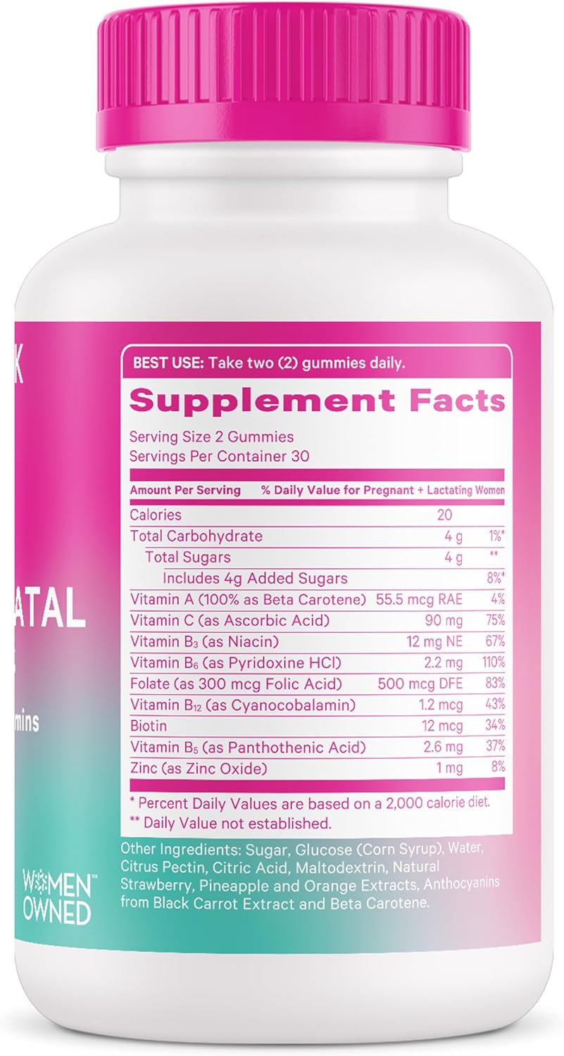 Pink Stork Total Postnatal Vitamin Gummies - Multivitamin for Postpartum Recovery and Lactation Support - Folic Acid, B6, & Vitamin C - Breastfeeding Essentials - 60 Gummy Vitamins