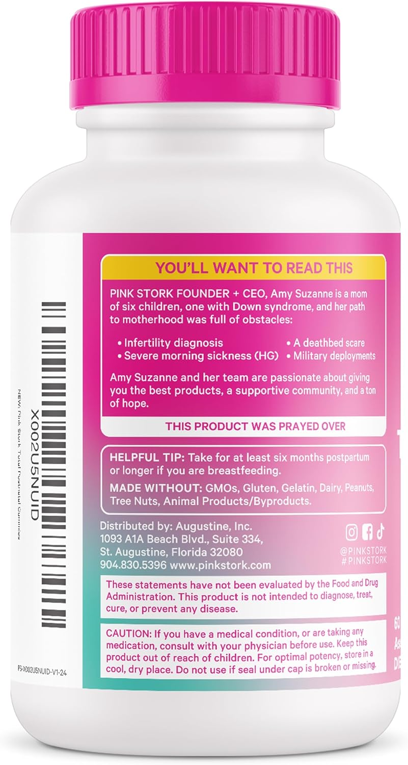 - Postpartum Care: When women start this new chapter of motherhood, we’re focused on the baby, let Pink Stork focus on you! Total Postnatal Gummies helps fill the nutritional gaps to help you feel your best. Our blend of vitamins and nutrients can help promote postpartum recovery, balance energy levels, digestion, immune health, and hormone balance.