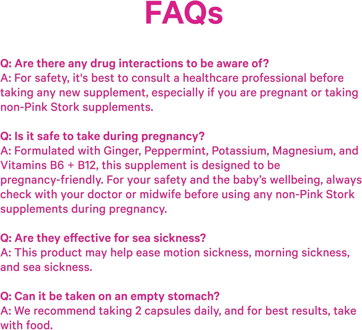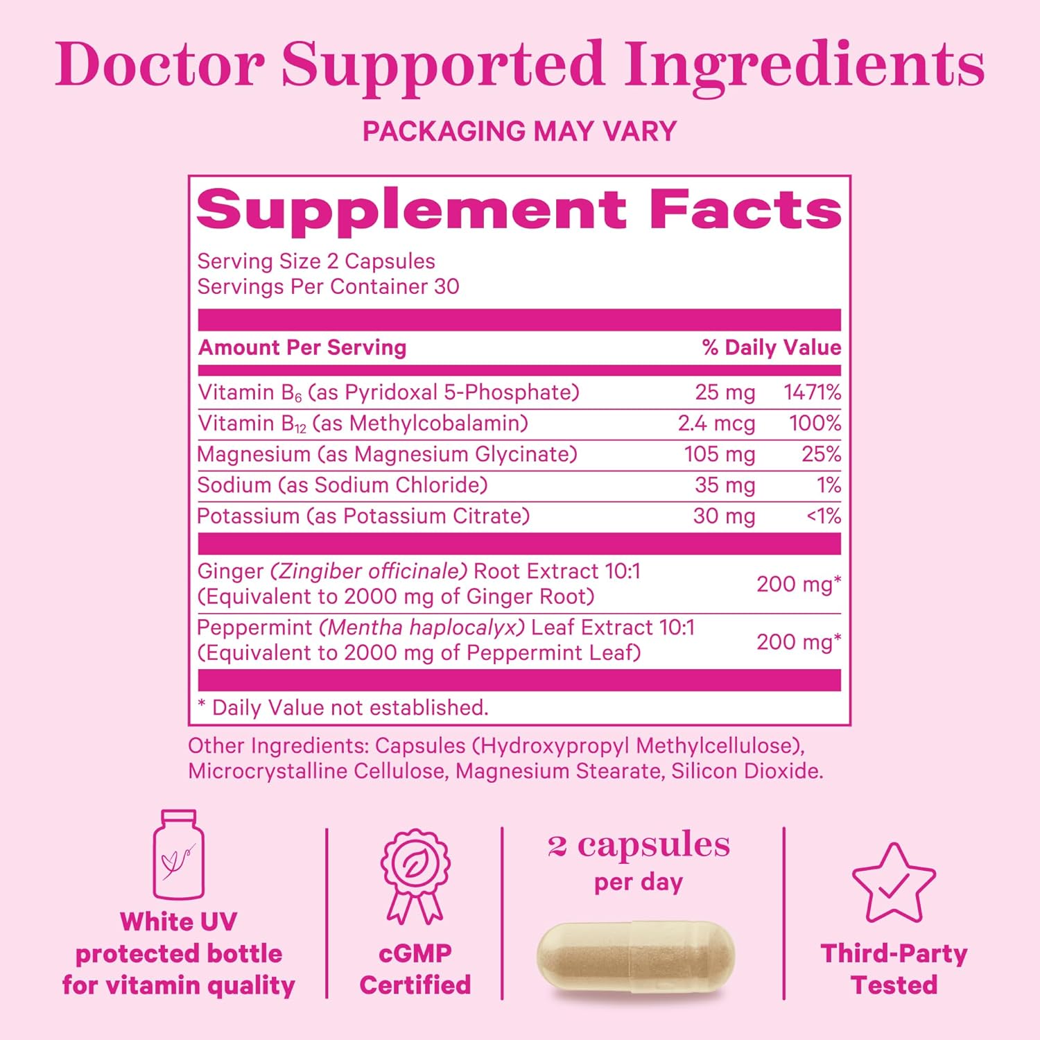Pink Stork Vitamin B6, Ginger, Electrolyte Capsule - Natural Digestive Support with Peppermint, Potassium, Magnesium - Gentle on The Stomach - Pregnancy, + Motion Sickness Must Haves - 60ct