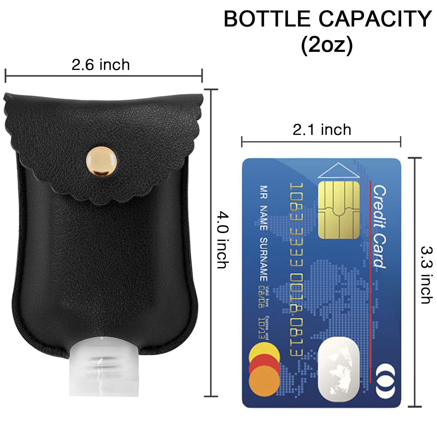 - TRAVEL FRIENDLY - 2.0 oz small plastic travel size bottle with leather holder pouch can clips to backpack, keychain and diaper bag.
