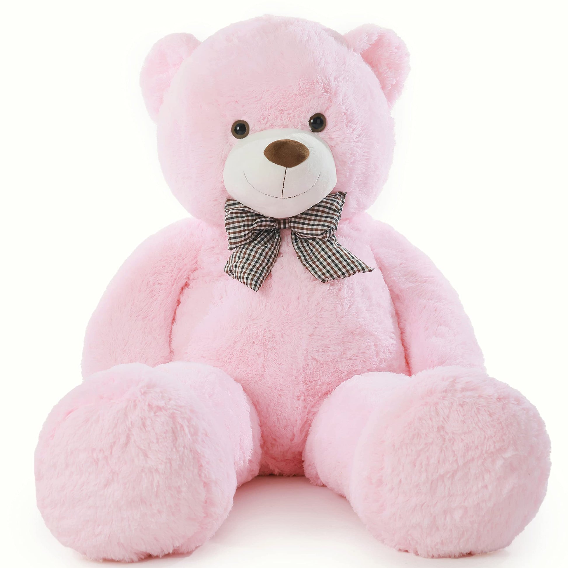- Size:47 inches from head to toes.Color:Pink(as the picture shown).The giant teddy bear is so good for hugging and snuggling because of its beautiful color and size.