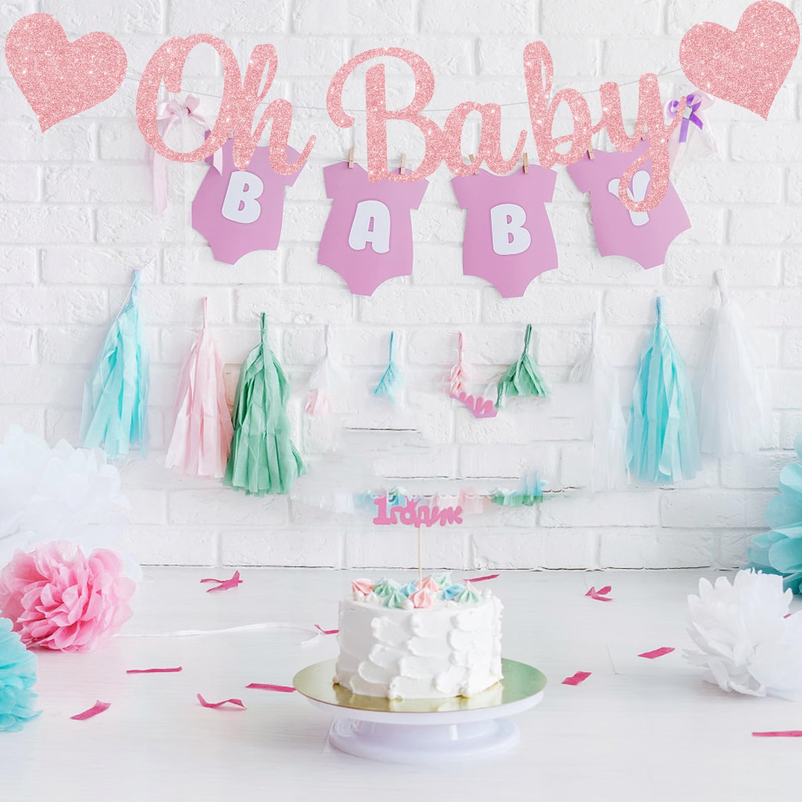- Captivating Gold Glitter: Our Oh Baby Rose Gold Glitter Baby Shower Banner Sign adds an elegant touch to your baby shower or gender reveal party. The shimmering rose gold catches the light, impressing your guests with its stunning beauty.