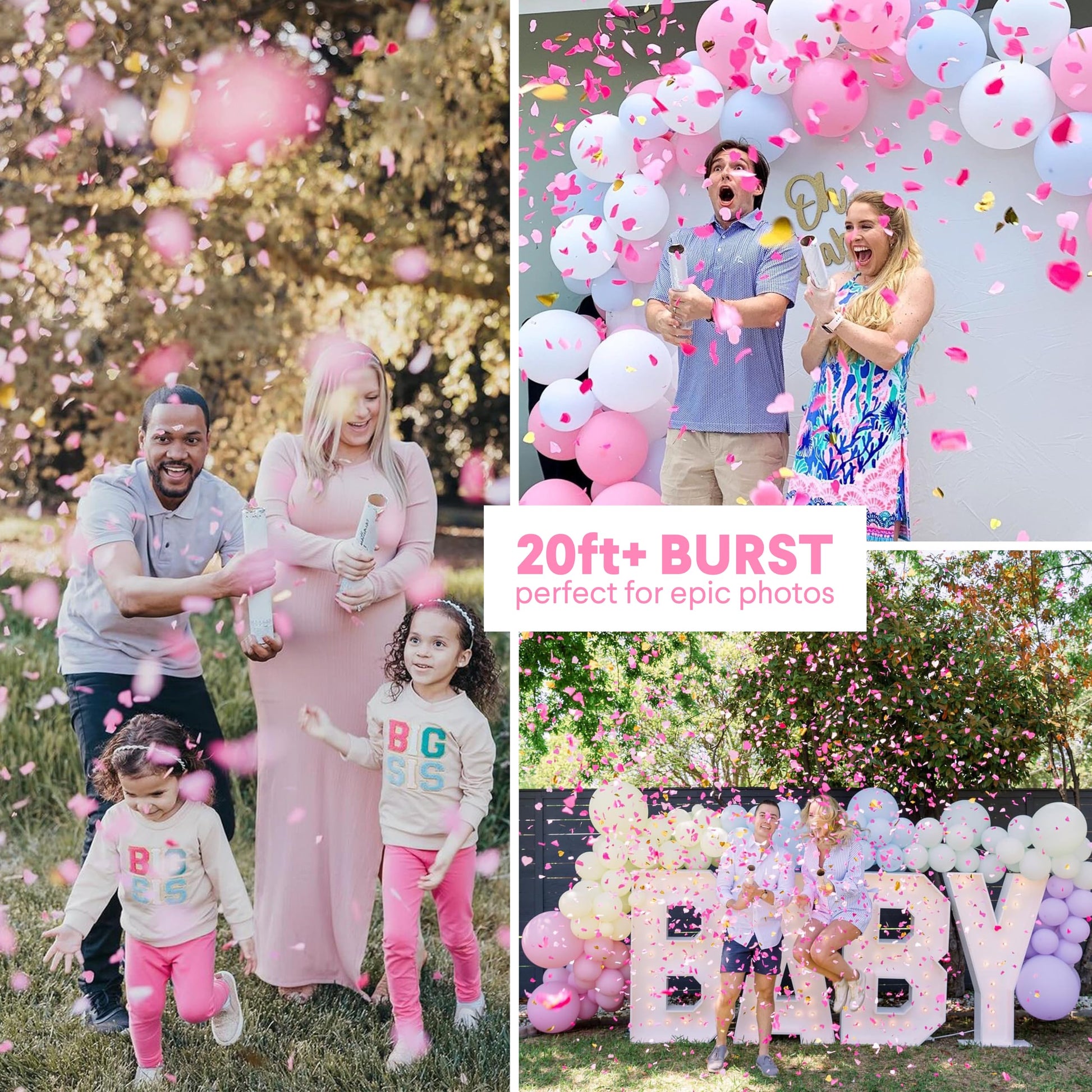 - Announce With a Bang - Keep everyone guessing until the gender reveal color cannons are launched and the confetti explodes revealing the baby's gender