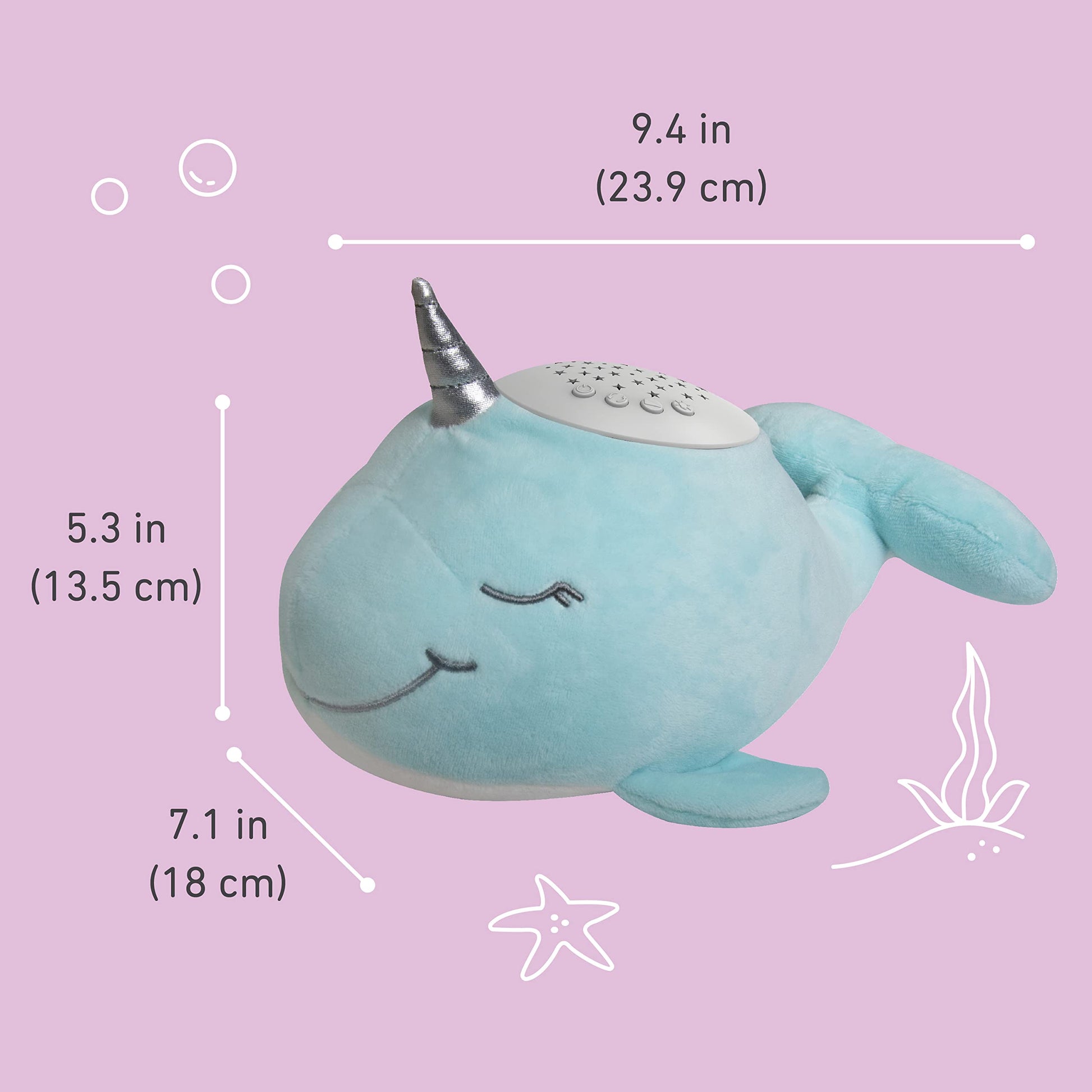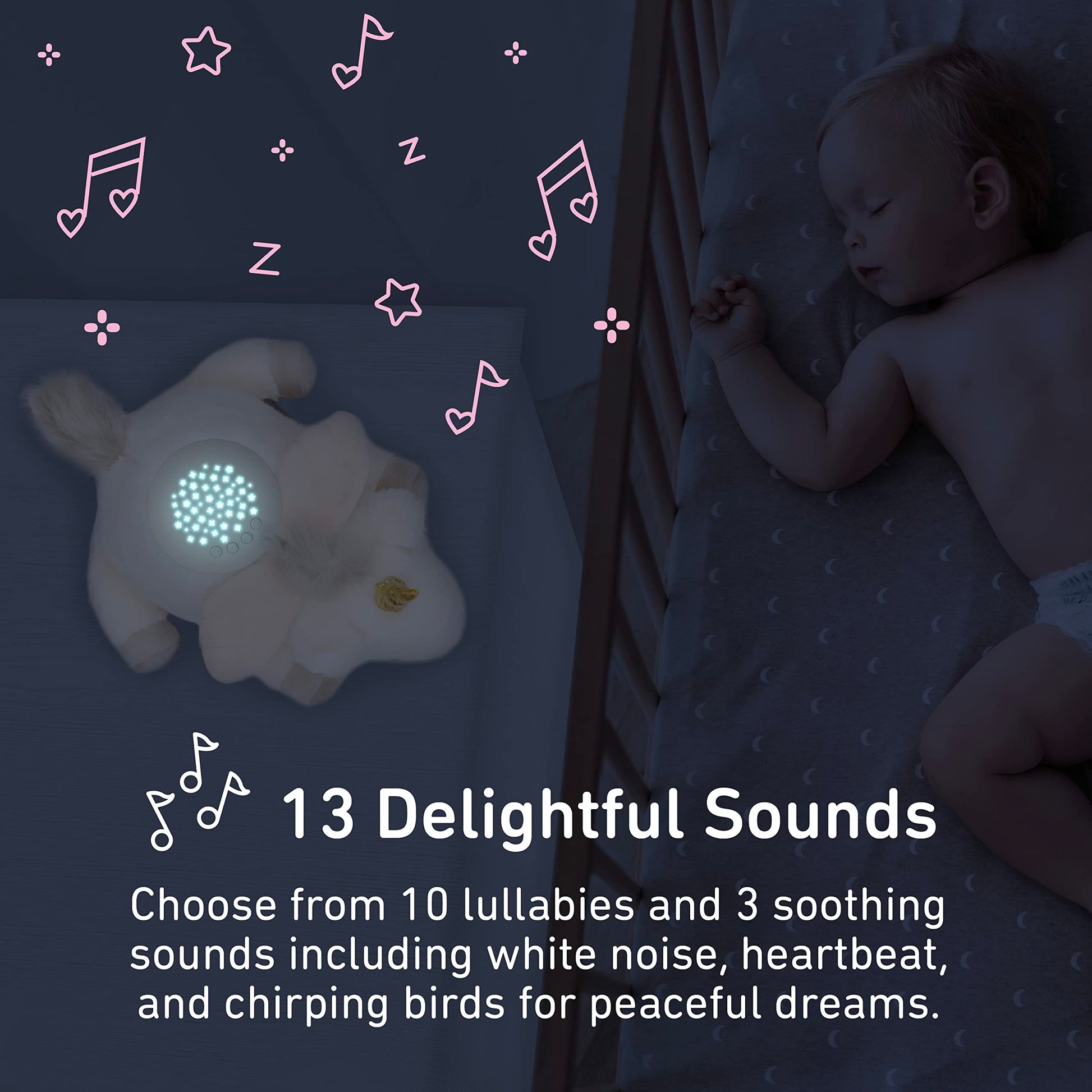 PureBaby Sound Sleepers Portable Sound Machine & Star Projector - Plush Sleep Aid for Baby and Toddlers with Soothing Night Light Display, 10 Lullabies, White Noise, and Heartbeat Sounds (Unicorn)