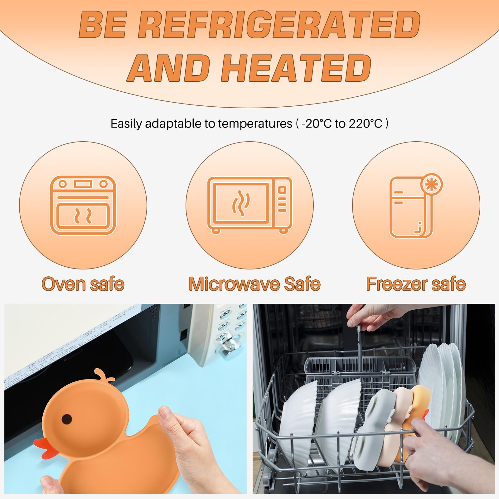 - 【Funny Duck children's dinner plate】Cute duck shapes make mealtime fun for your kids! With a suction cup design at the bottom, this baby tray is easy to stick to the table surface, making mealtime more fun and easy to use